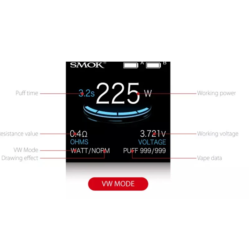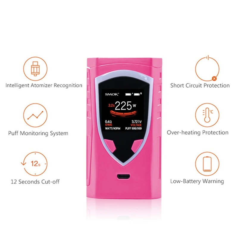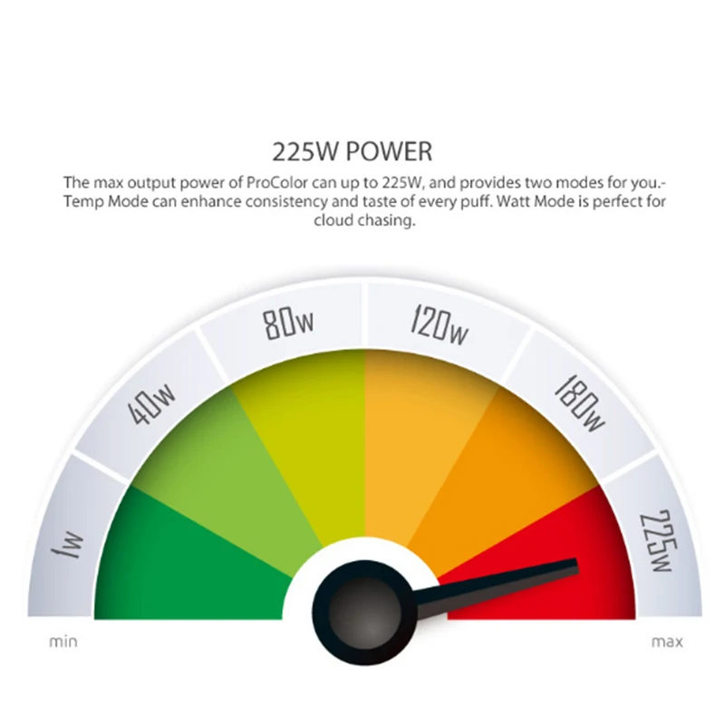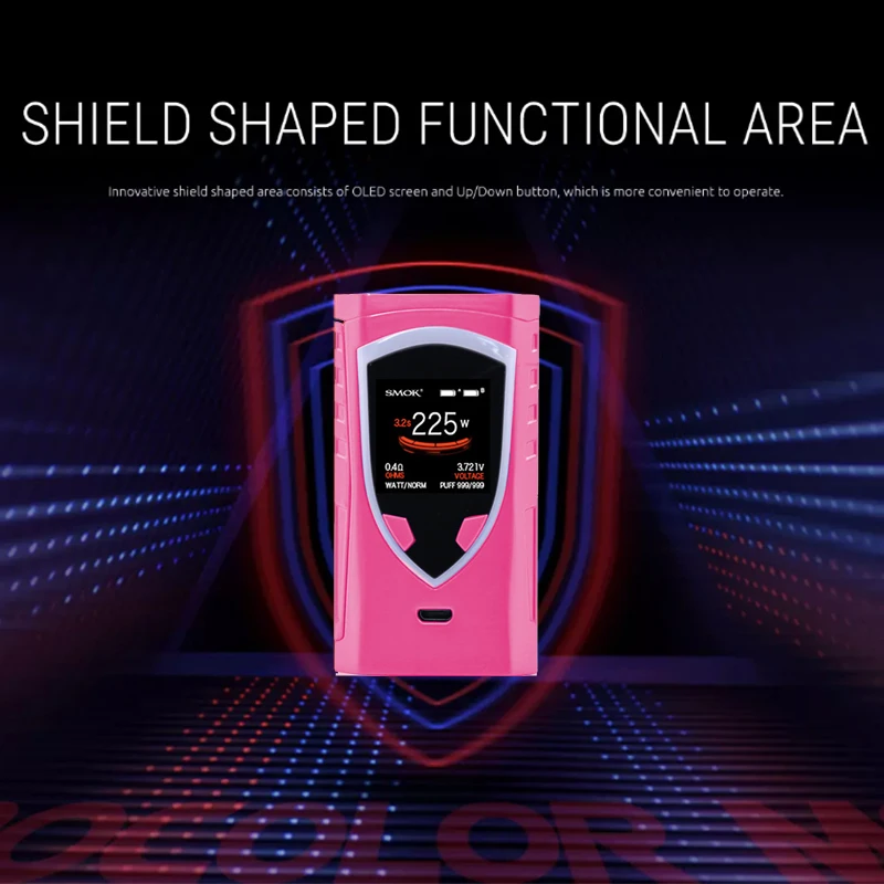 Это 225 Вт TC Box MOD создано Двойной 18650 батареи. ProColor MOD обладает инновационной щит области 1,3 дюймов несколько цветов светодиодный экран для удобной работы. Вместе с боковым большим пожарным ключом, эргономичным дизайном на ощупь, VT/ VW(Ti,Ni,SS)/тремя режимами памяти, обновленной прошивкой и зарядкой USB, мод ProColor подарит вам ощущение комфорта рук и более удобную работу с большой мощностью. ЛУЧШИЙ совместимый с TFV8 Big Baby Tank.