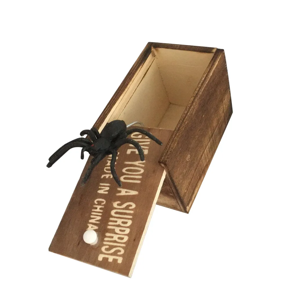 1XДеревянная коробка с резиновым пауком