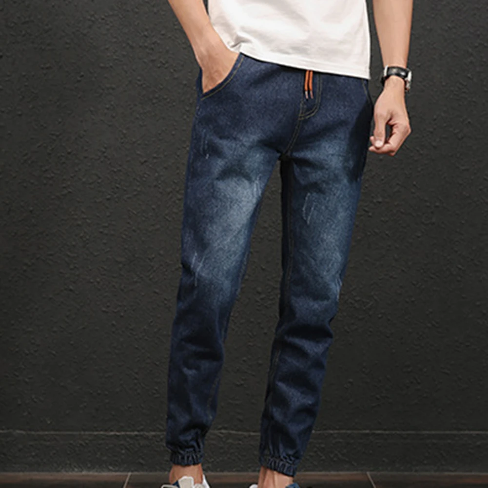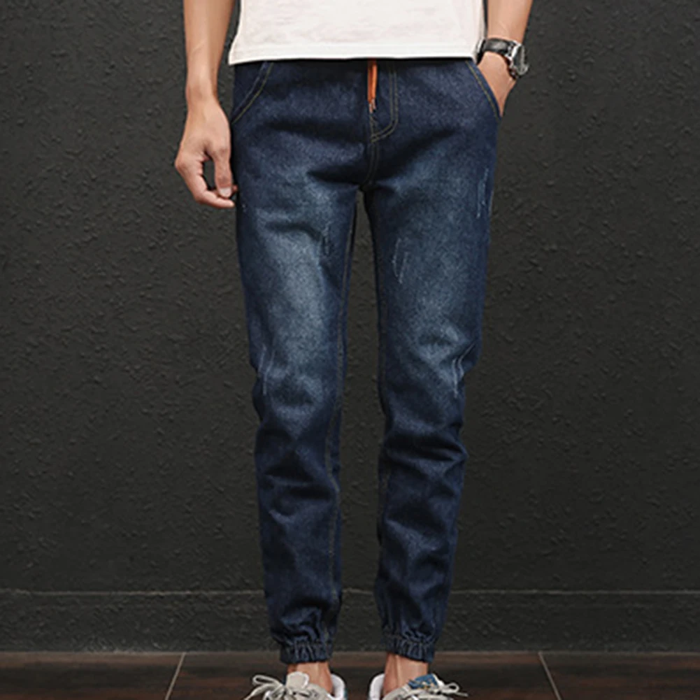 Модные Повседневные Удобные мужские джинсы размера плюс с эластичной резинкой на талии