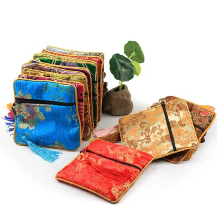 Парчовая Монета Наличные Кошелек ювелирные изделия Pounch сумка с кисточкой, каждый мешок с молнией