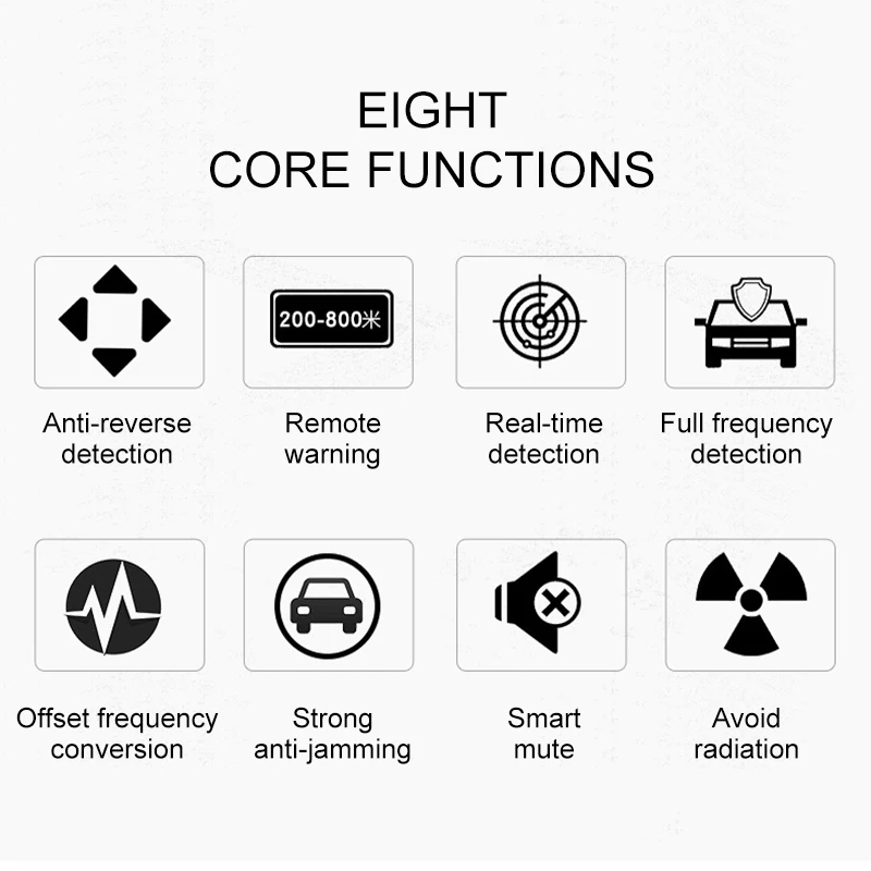 Эта модель может обнаруживать полицейский радар-пистолет на 200-800 метров вперед. Диапазон обнаружения будет немного отличаться в зависимости от состояния дорожного движения, ландшафта, климата.