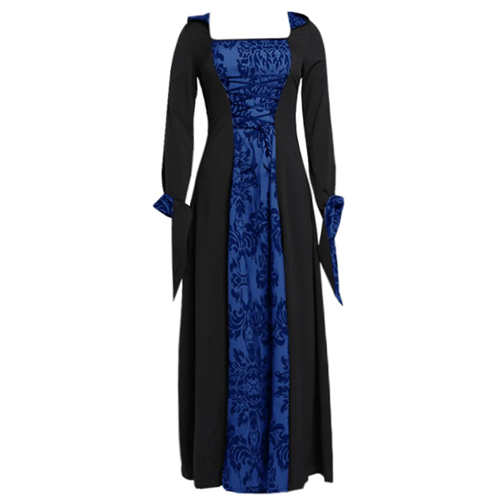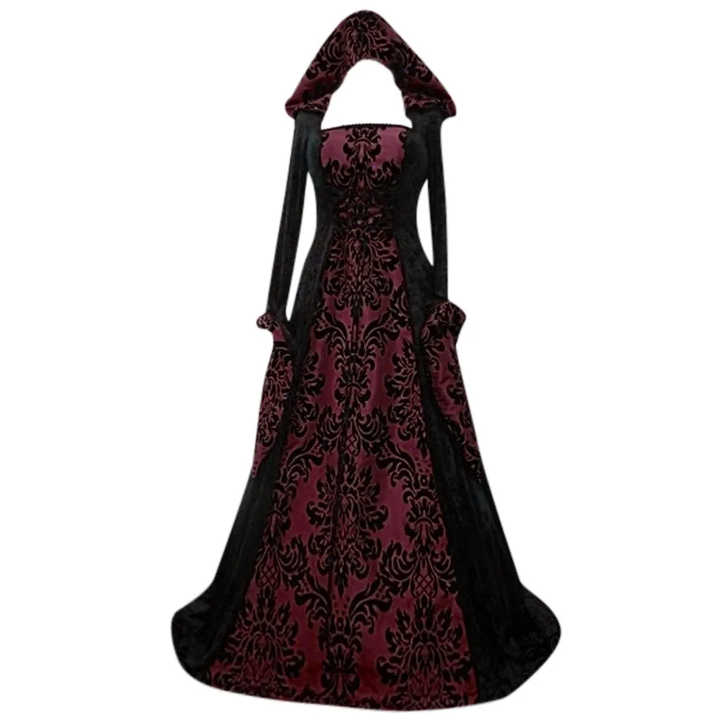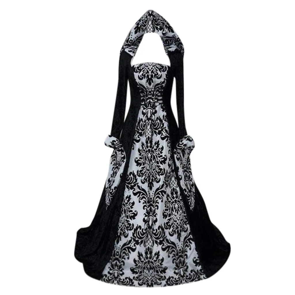 Женское винтажное Ретро готическое с длинным рукавом с капюшоном Макси длинное вечернее платье платья