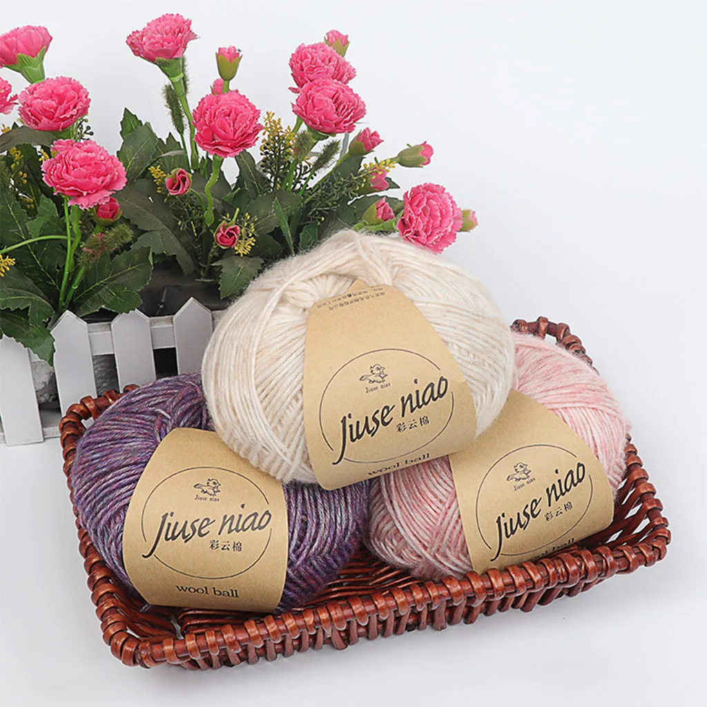Красочные облака хлопок ручной вязки в грубой шерсти Вязание крючком Diy свитер линия шарф