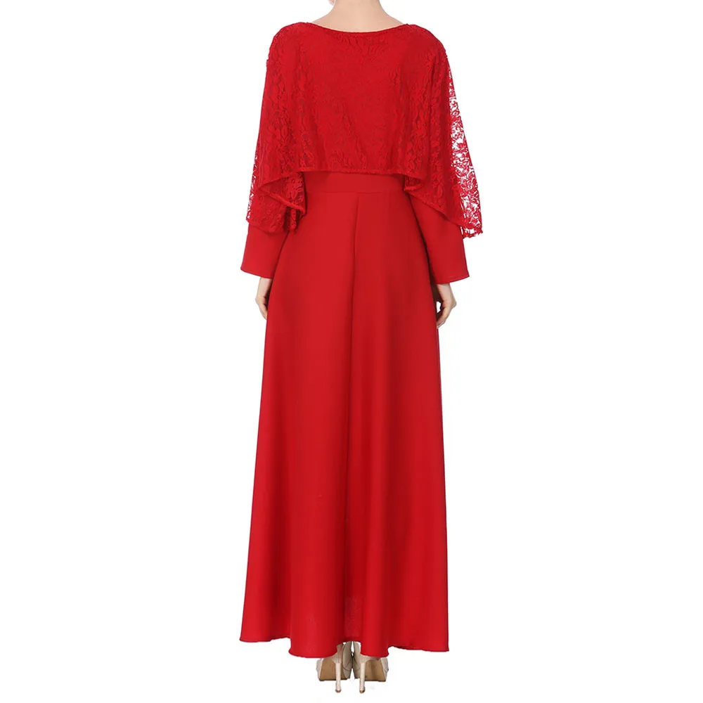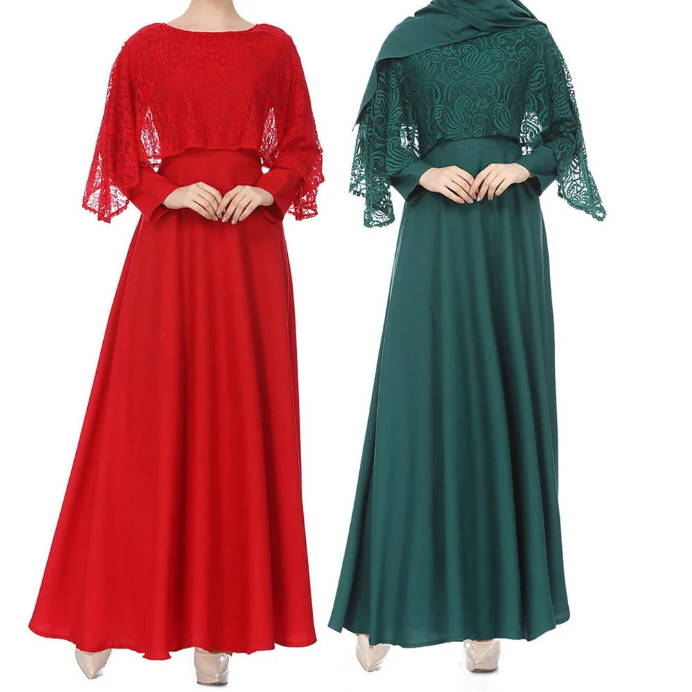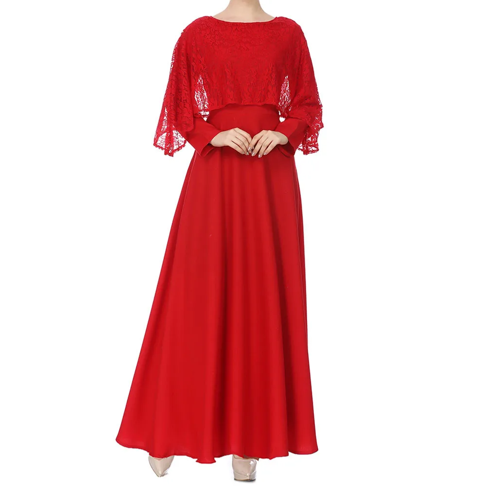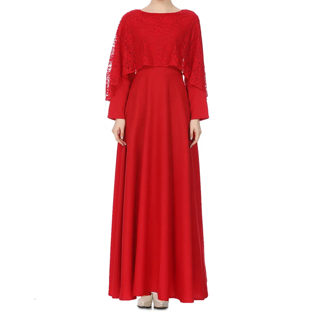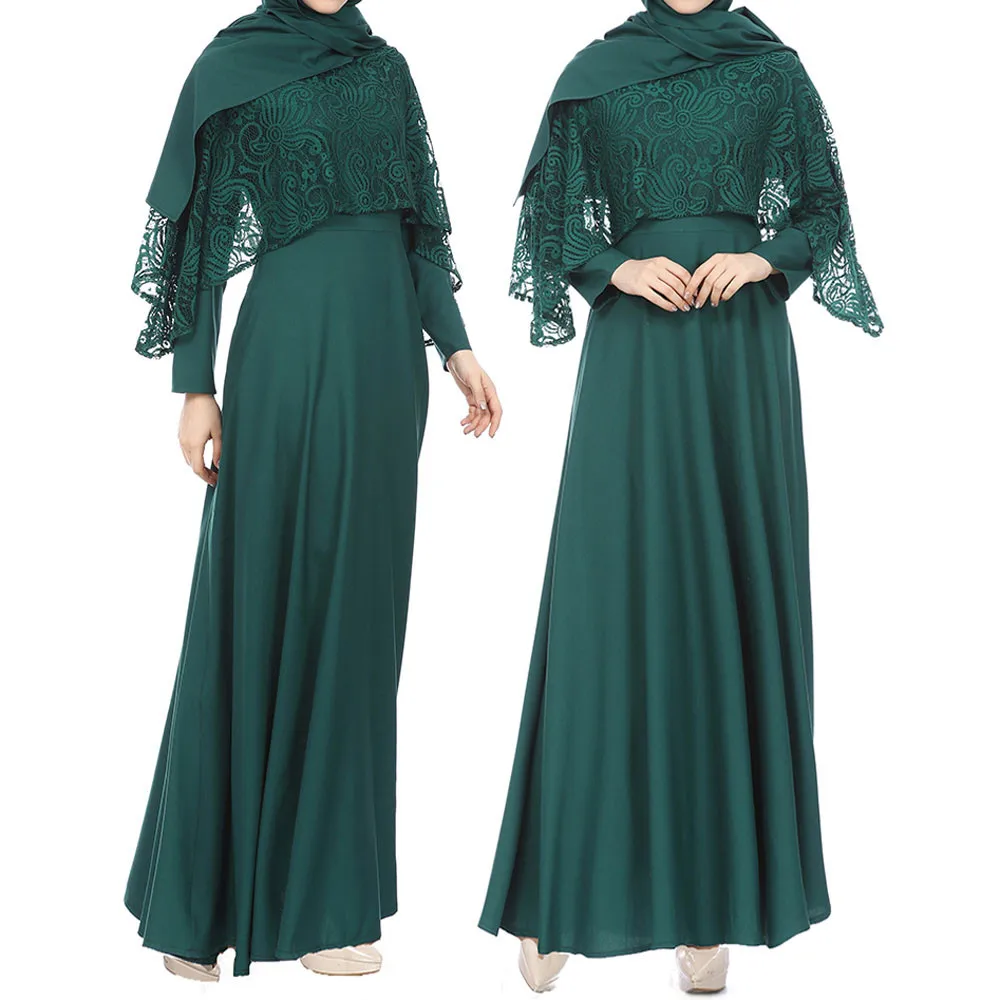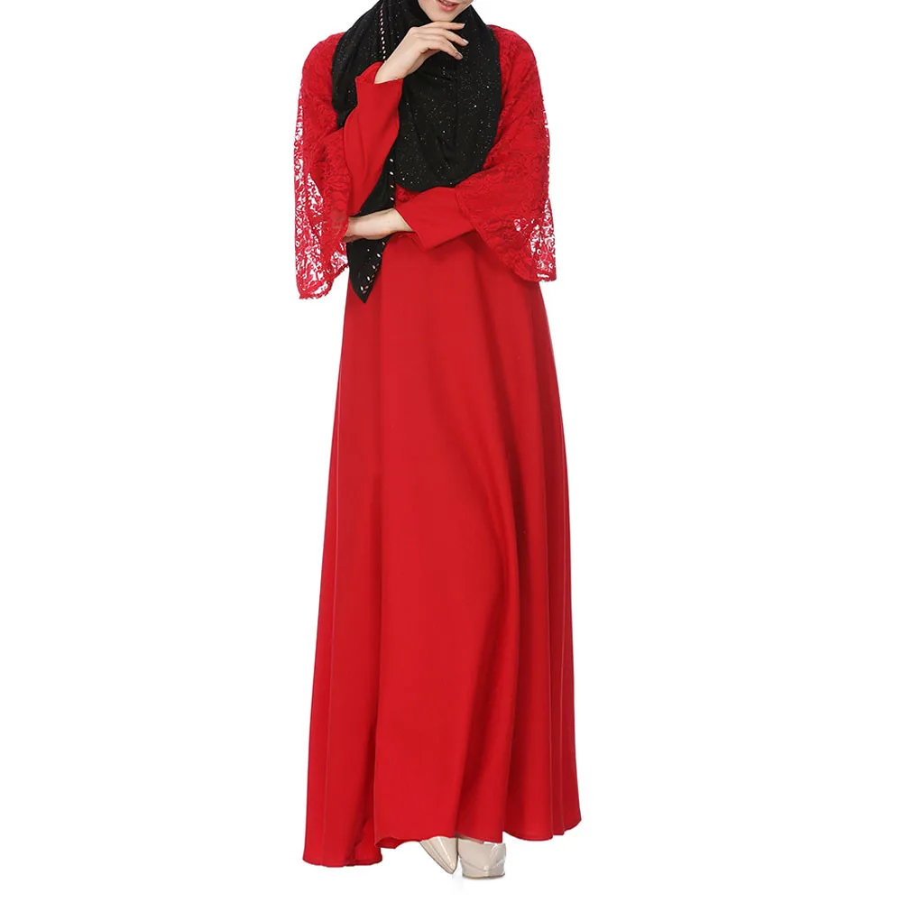 Женское мусульманский Кафтан-абайя Jilbab, длинное Кружевное Платье макси с длинным рукавом