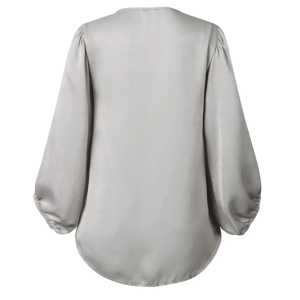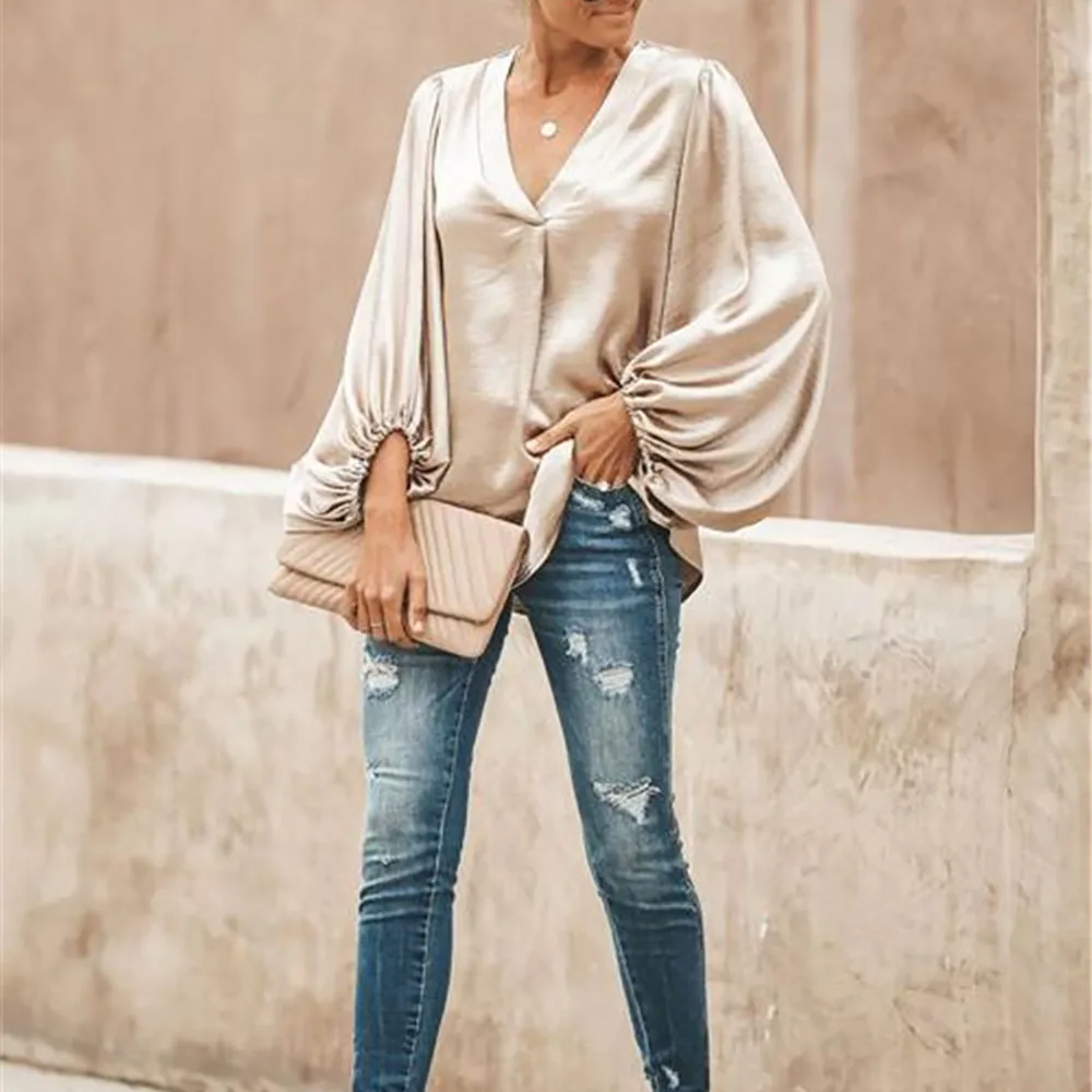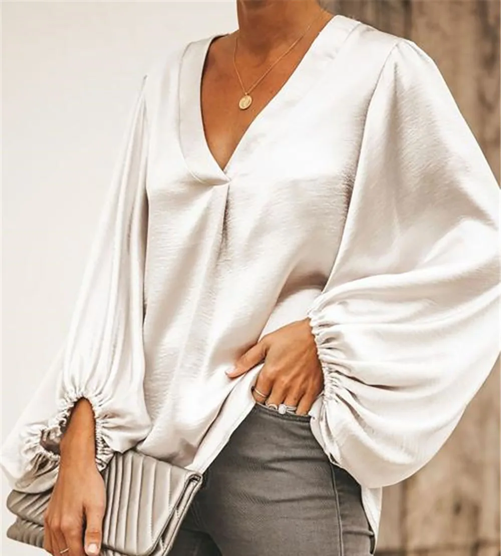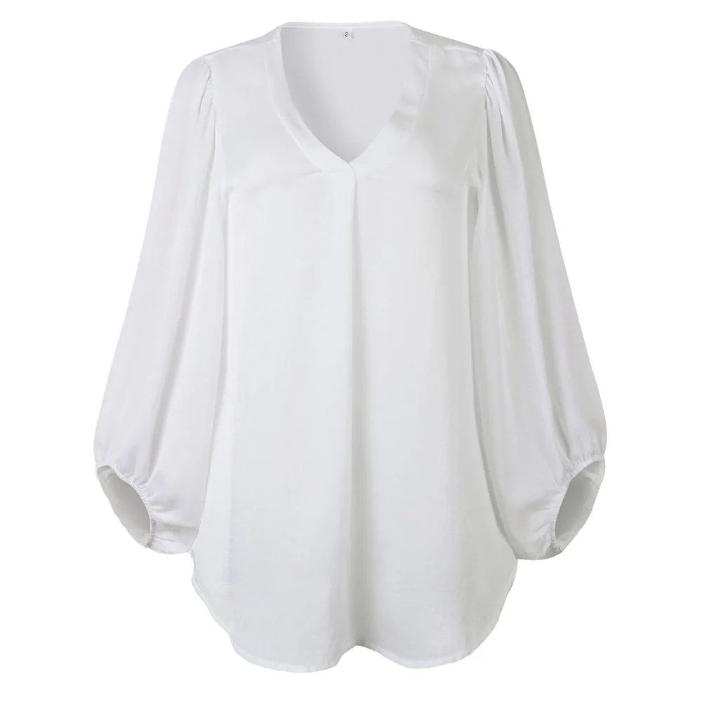 Модное женское пальто с глубоким v-образным вырезом и длинным рукавом, Повседневная однотонная Осенняя рубашка, свободные топы, шифоновая блузка с воздушным шаром, женская одежда