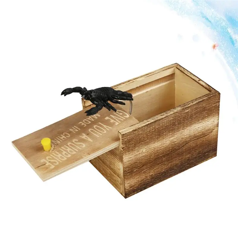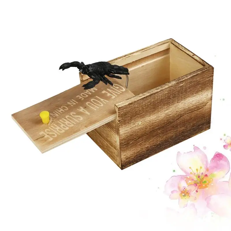 -Использование: деревянная коробка-сюрприз с ярким пауком внутри.
