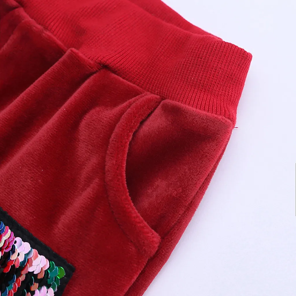 Теплая флисовая толстовка с капюшоном и блестками для маленьких мальчиков и девочек, комплект со штанами