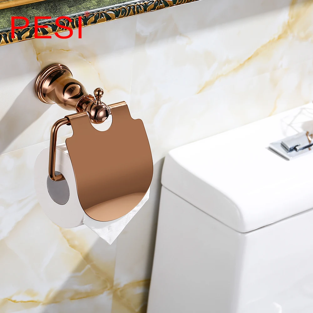 Латунные аксессуары для ванной комнаты, розовое золото, крючок для халата, вешалка для полотенец, полка для туалетной бумаги, держатель для салфеток, набор оборудования.