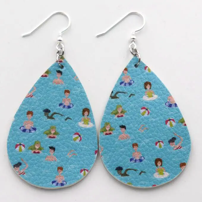 Двухсторонняя искусственная кожа серьги 5,5*3,5 см