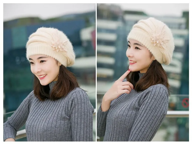 Элегантная женская вязаная шапка, береты с кроличьим мехом, шапка, Осень-зима, вязанные крючком шапки, женские толстые шапки, берет, шапка