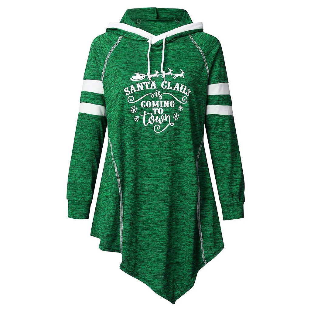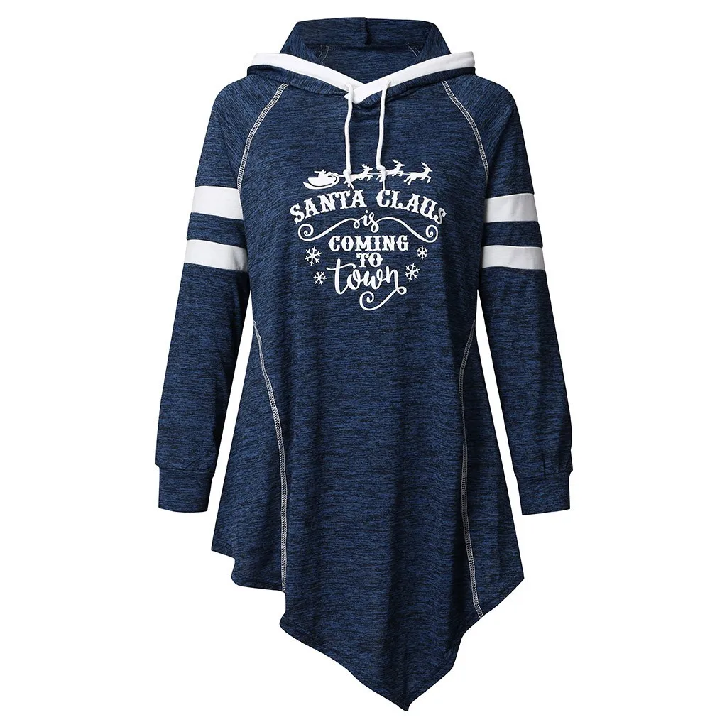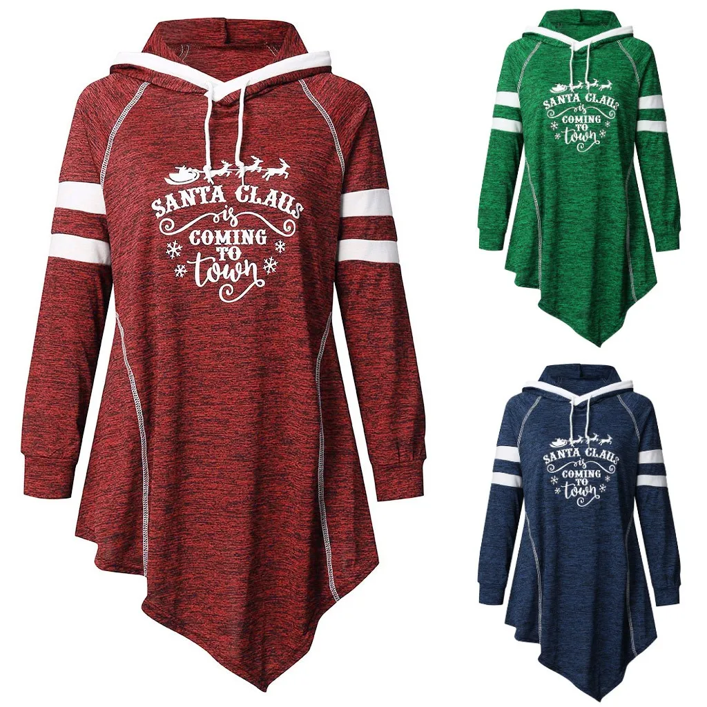 Рождественские женские зимние топы с принтом, толстовка с капюшоном, блузка, футболка