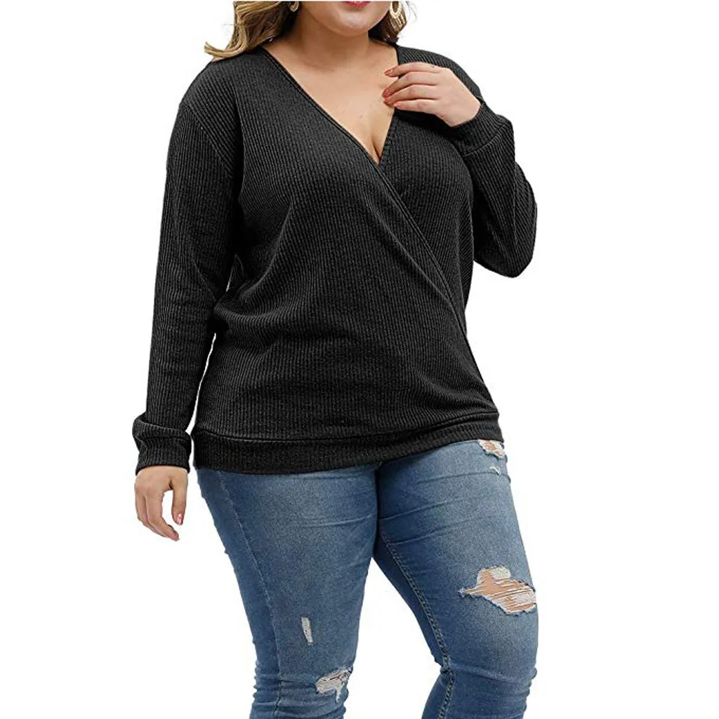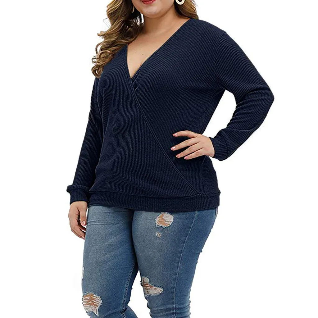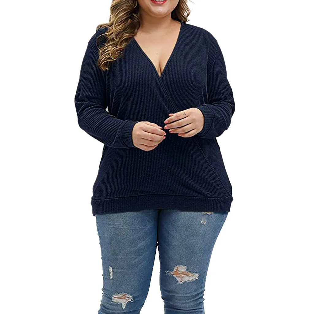 1. Особенности: женские топы больших размеров, v-образный вырез, длинный рукав, однотонный, глубокий крест, пуловер, топы.2. Материал:Полиэстер. Полиэфирное волокно, изготовлено из высококачественной ткани, легкая, мягкая и удобная.