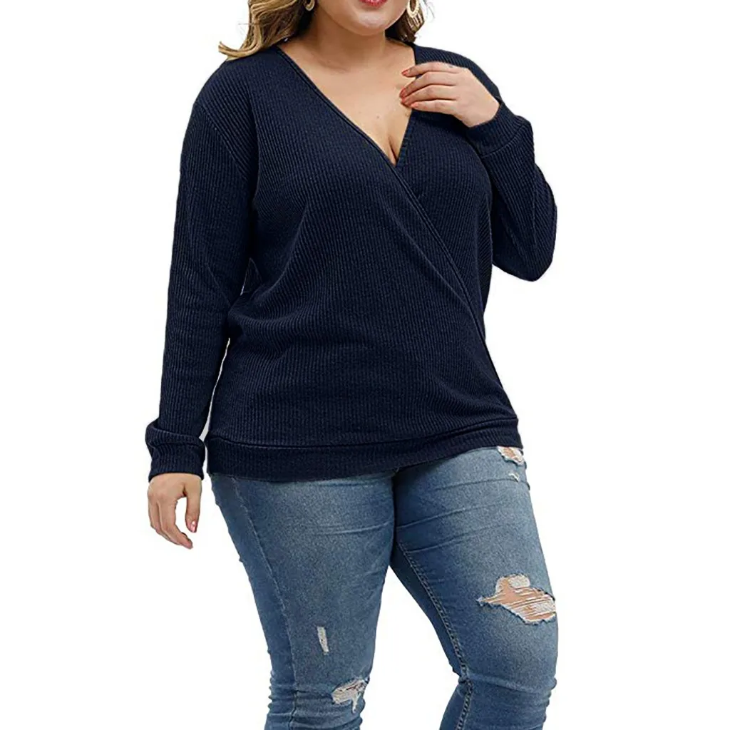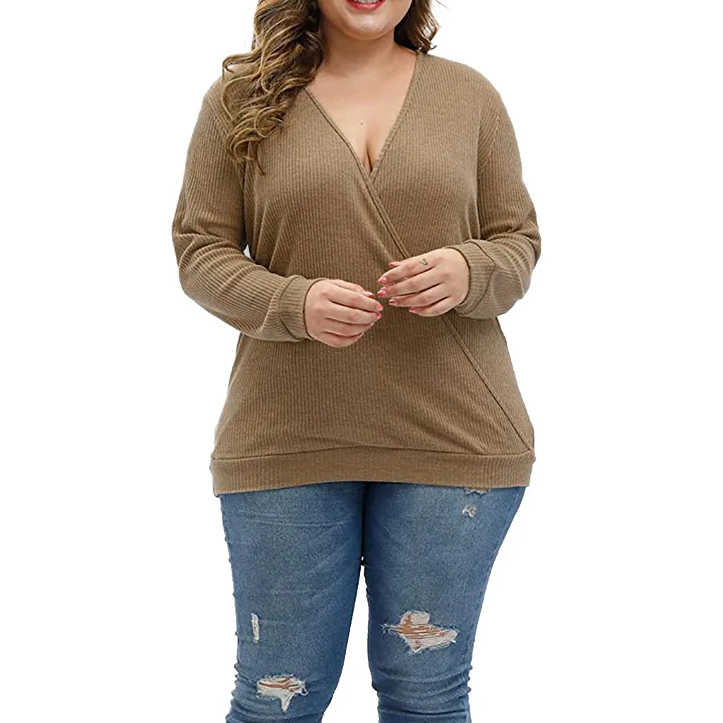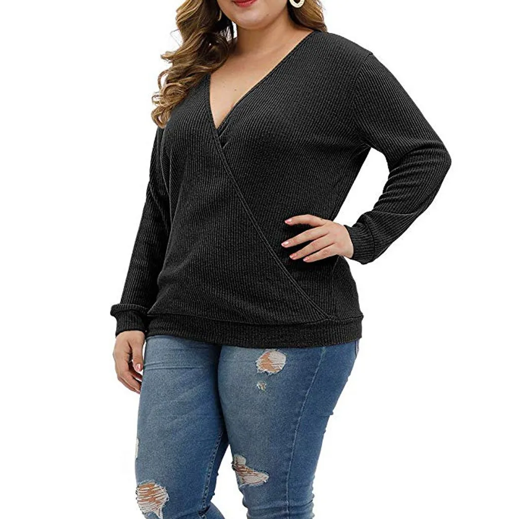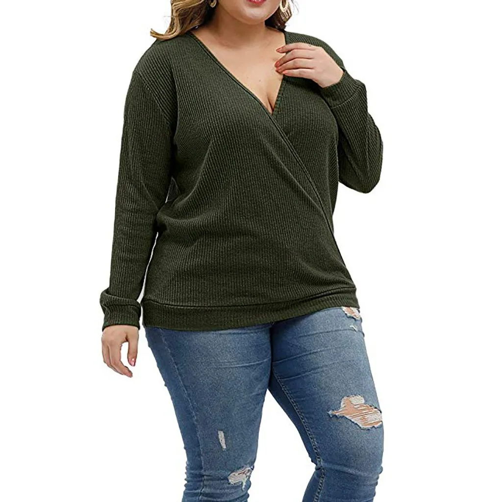 1. Особенности: женские топы больших размеров, v-образный вырез, длинный рукав, однотонный, глубокий крест, пуловер, топы.2. Материал:Полиэстер. Полиэфирное волокно, изготовлено из высококачественной ткани, легкая, мягкая и удобная.