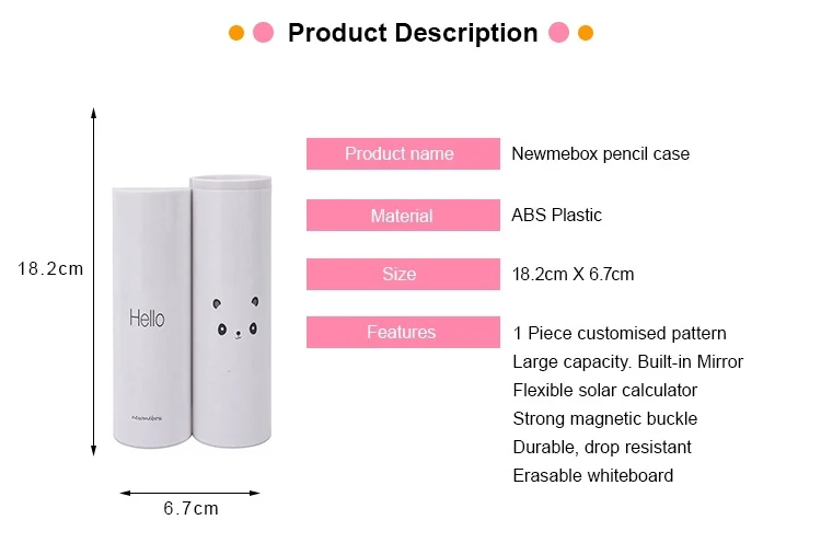 1. Это креативный чехол-карандаш. 2. Чехол-карандаш имеет встроенный калькулятор, и это солнечный калькулятор, который не требует никакой мощности. Может использоваться до тех пор, пока светильник освещается. 3. Есть зеркало внутри Карандаш Чехол, который может использоваться для того, чтобы оценить ваш собственный красоту. 4. Мы даем ручку для белой доски, которую можно вытереть, и чехол для карандаша можно вытереть. 5. Очень подходит для использования в качестве подарка