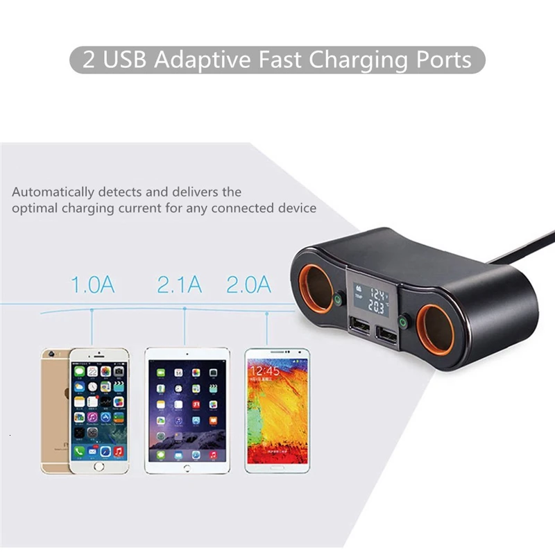 Разветвитель Прикуривателя, 2 гнезда, 2 разъема, Переходник USB для зарядки в машине дюйма