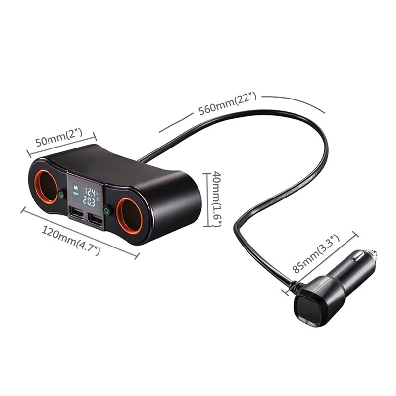 Отдельные кнопки: дизайн прикуривателя для каждого отверстия Отдельная кнопка, когда вы хотите использовать отверстие прикуривателя, просто аккуратно нажмите кнопку, чтобы выключить Дополнительное отверстие прикуривателя, чтобы обеспечить вам безопасное путешествие.