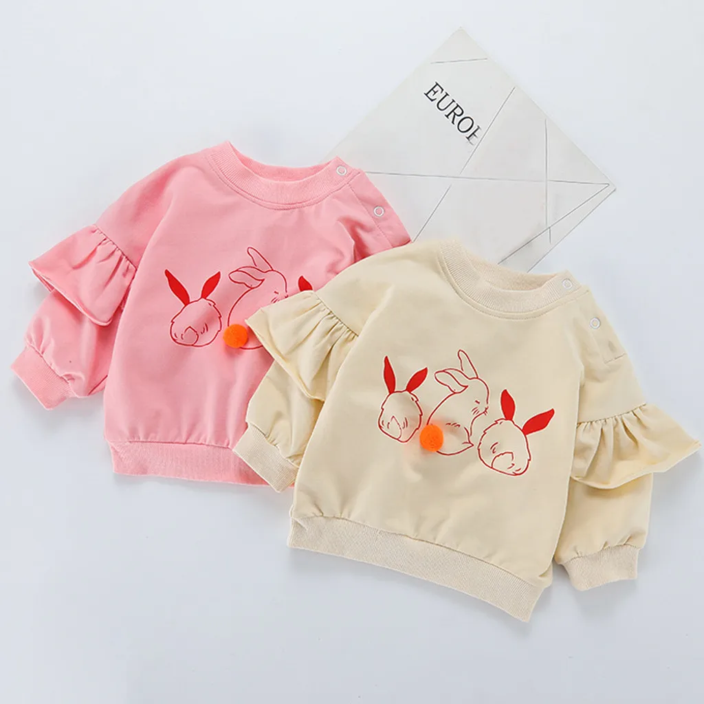 Пуловер с принтом кролика для маленьких девочек, топы, футболка, повседневная одежда