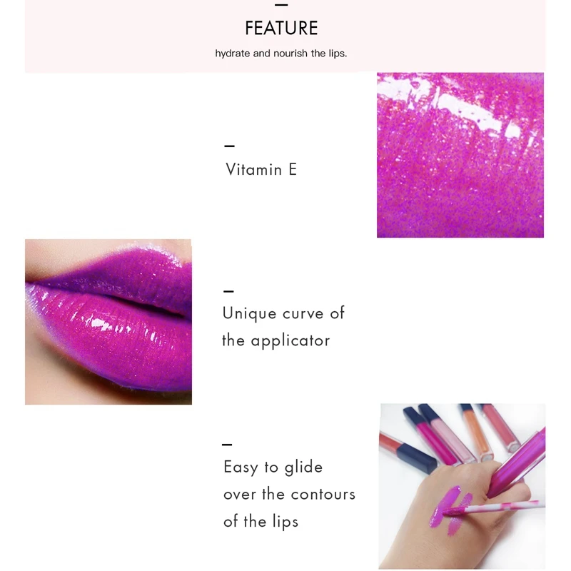 1. Выскальзывание и увлажнение: цвет будет тонко окрашен на губе, увлажняя губы в течение длительного времени без высыхания, и тихонько формируя слой геля макияжа водной пленки.
