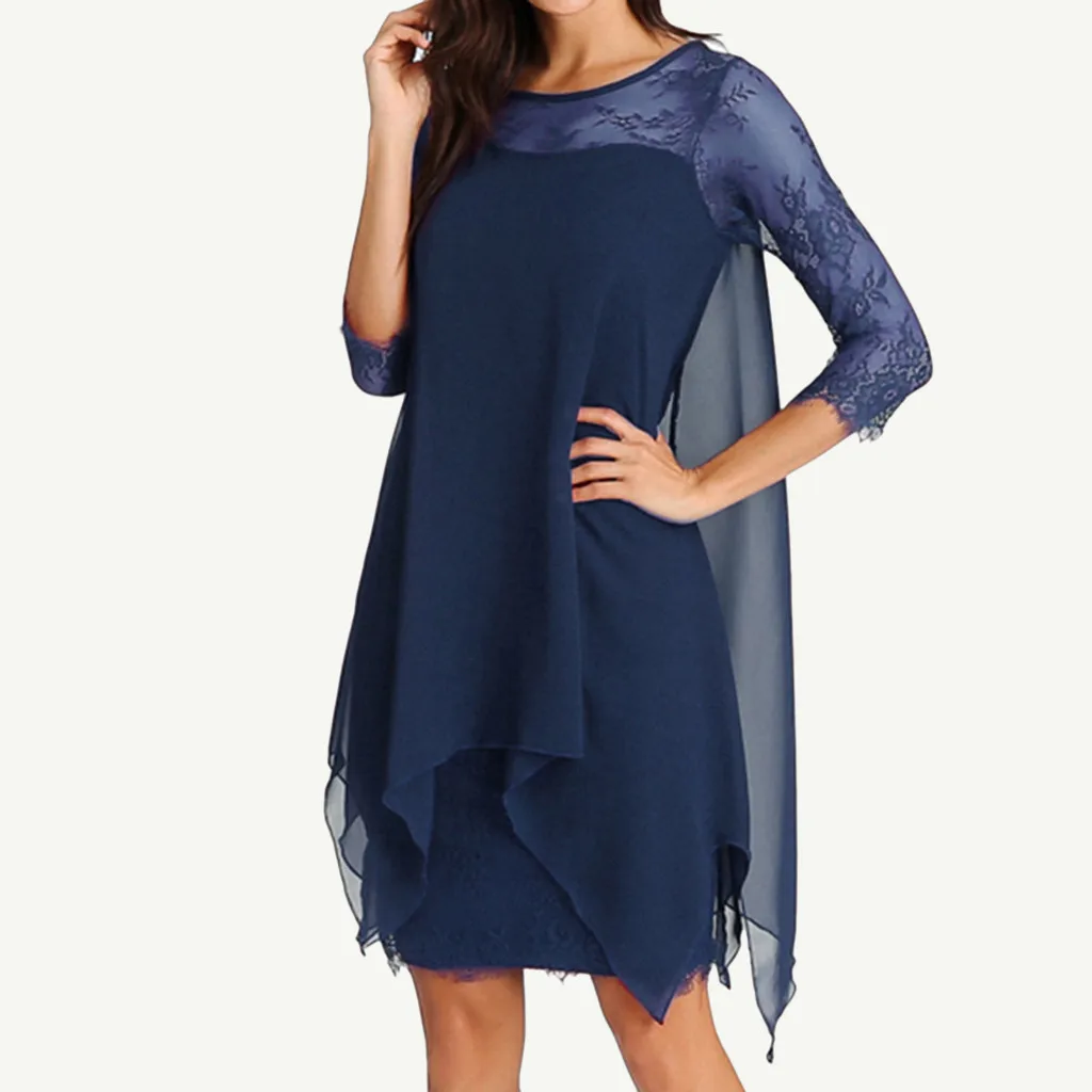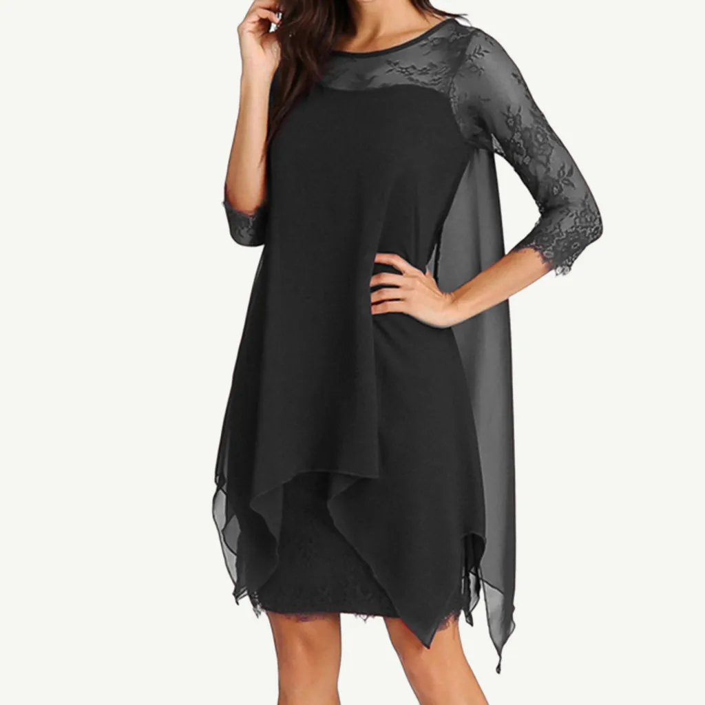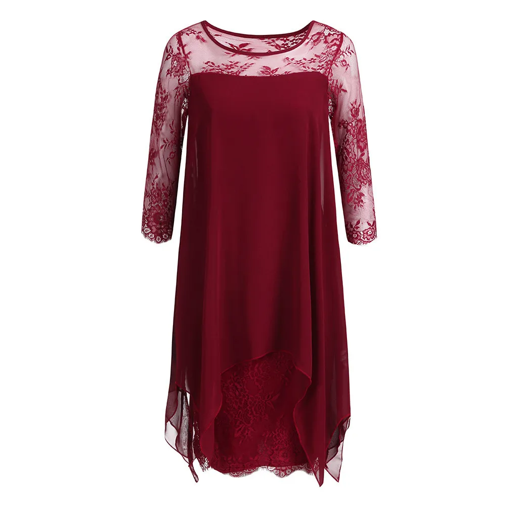 Женское шифоновое кружевное платье MIARHB размера плюс с рукавом три четверти, осенне-зимняя одежда до колена, 2019