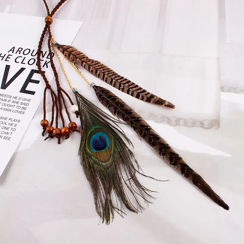 DescriptionПовязка на голову с перьями для женщин богемный головной убор для хиппи ручной работы волосы в стиле павлина лента аксессуар для волос аксессуары для Хэллоуина
