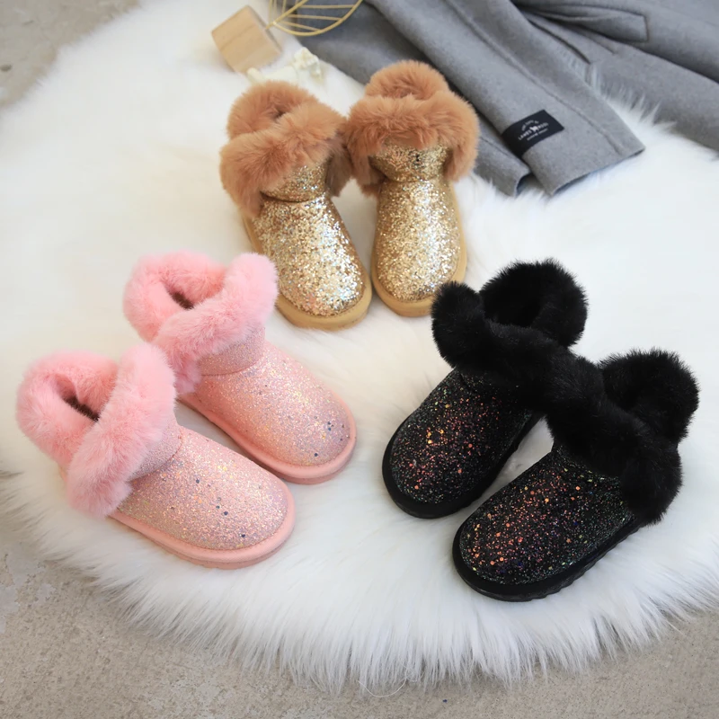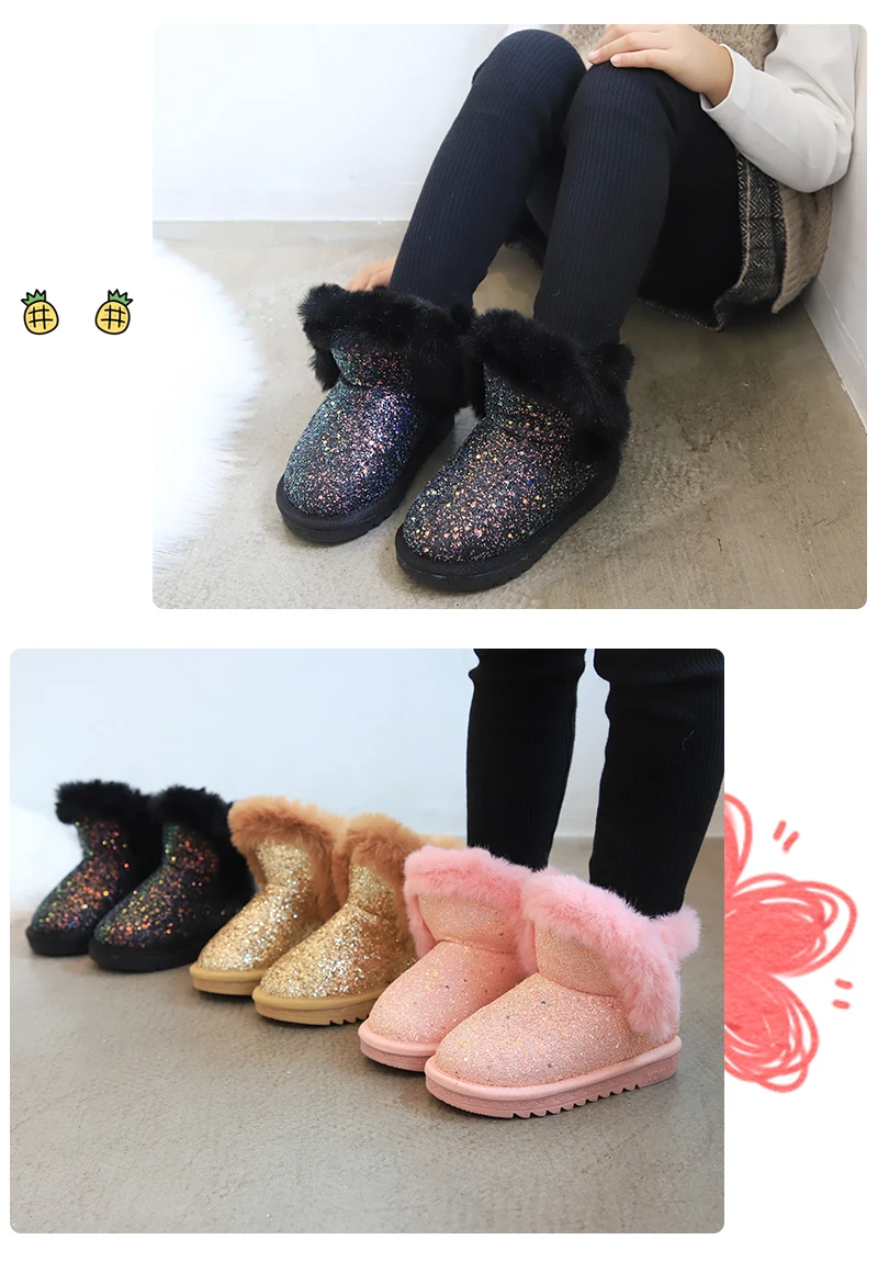 Ботинки для детей, модные зимние ботинки для девочек в Корейском стиле, шикарные плюшевые зимние ботильоны, обувь для больших детей, Войлочные ботинки для девочек, 2019