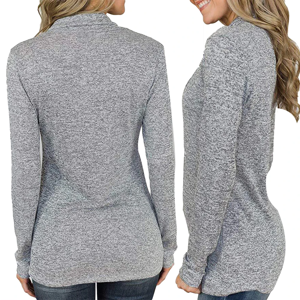 Повседневные однотонные Цвет для женщин с длинным рукавом пуловер на молнии воротник-хомут «личика» из мультфильма