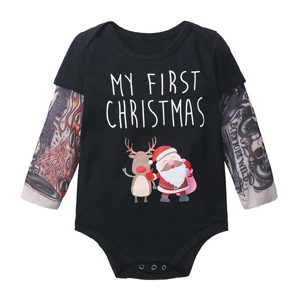 Рождественские футболки с длинными рукавами и принтом татуировки для маленьких мальчиков
