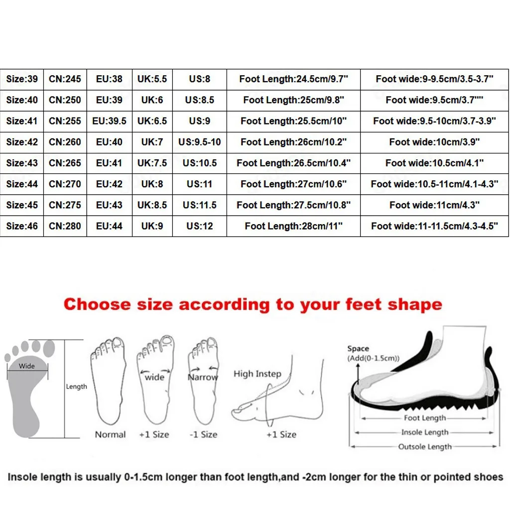 Стили обуви, пожалуйста, выберите размер в соответствии с типом вашей стопы.
