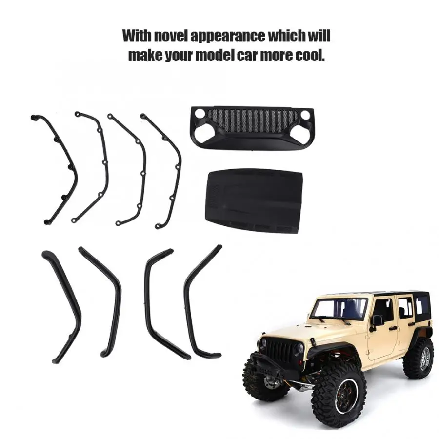 Передняя решетка корпуса двигателя крышка колеса Набор для бровей обновленный Аксессуар подходит для JEEP Wrangler Axial 1/10 RC Гусеничный автомобиль