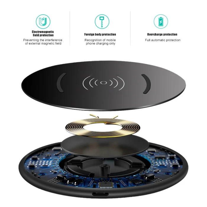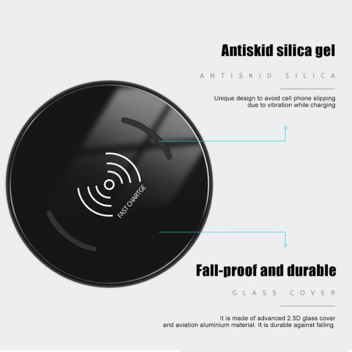 15W Wireless Charger Intelligent Induction Fast Charging Round Mount for Smartphone OD889