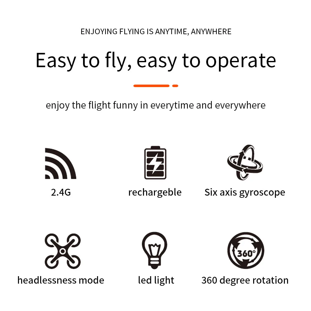 Частота: 2,4G Канал: 4ch Гироскоп: 6-осевой Аккумулятор для квадрокоптера: 3,7 в 200 мА-ч Время зарядки: около 40-60 минут Батарея передатчика: 3 x AAA (не входит в комплект) Время полета: 5 минут Расстояние R/C: выше 50-80 м Цвет: белый + черный Размер продукта: 14,5x14,5x4 см Посылка Размеры: 26,5x18,2x7 см Особенности: Мини-размер, отличная портативность. При безголовом режиме не нужно регулировать положение самолета перед полетом. С помощью одной кнопки Функция возврата позволяет легко найти путь домой. 2,4 ГГц Технология, принятая для защиты от помех. 4 канала, которые могут выполнять взлет, спуск, движение вперед, назад, левую боковую лету, правую боковую лету и поворот на 360 °. 6 оси гироскопа, который может иметь более стабильный полет и быть простым в управлении. Он имеет 2 уровня скорости полета для переключения, которая может сделать больше удовольствия с летящим. Он может реализовать 3D падение 360 ° прокатки в четырех направлениях с 4 светодиодный свет. Фюзеляж квадрокоптера изготовлен из высокопрочного и стойкого инженерного пластика, легкого и прочного сопротивления. Функция: вверх/вниз, вперед/назад, поворот влево/вправо, боковой f светильник, светодиодный светильник, Безголовый режим, автоматический возврат одной кнопкиПосылка включает в себя: