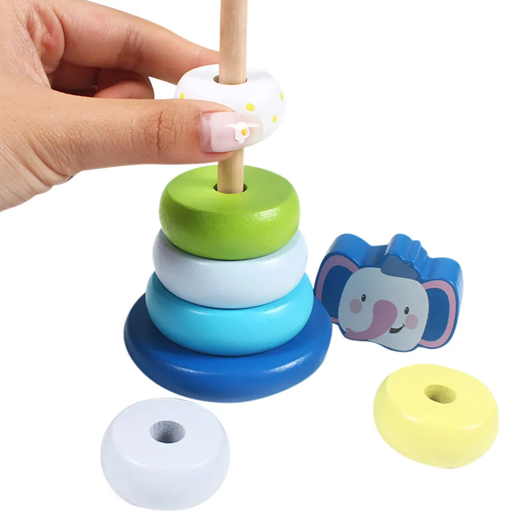 1 x Деревянные Складные кольца, игрушки со слонами, развивающие игрушки