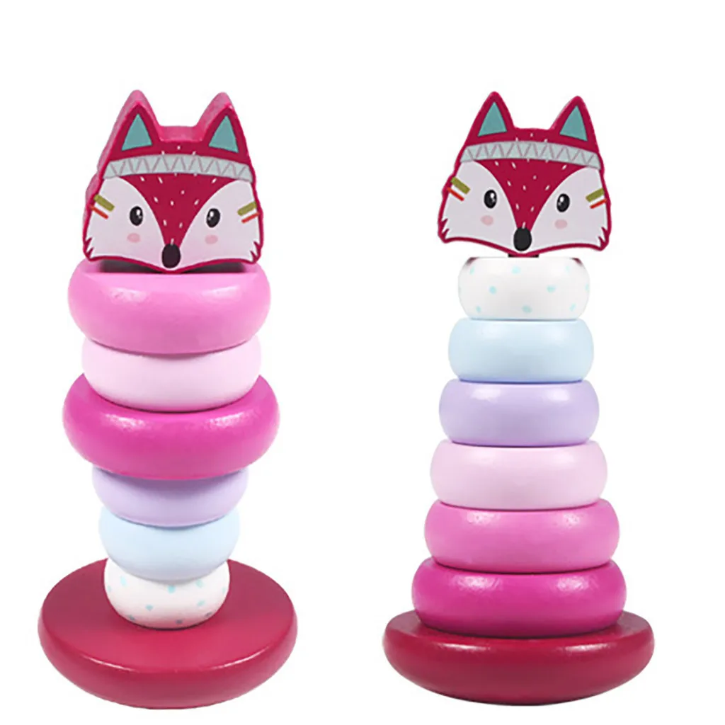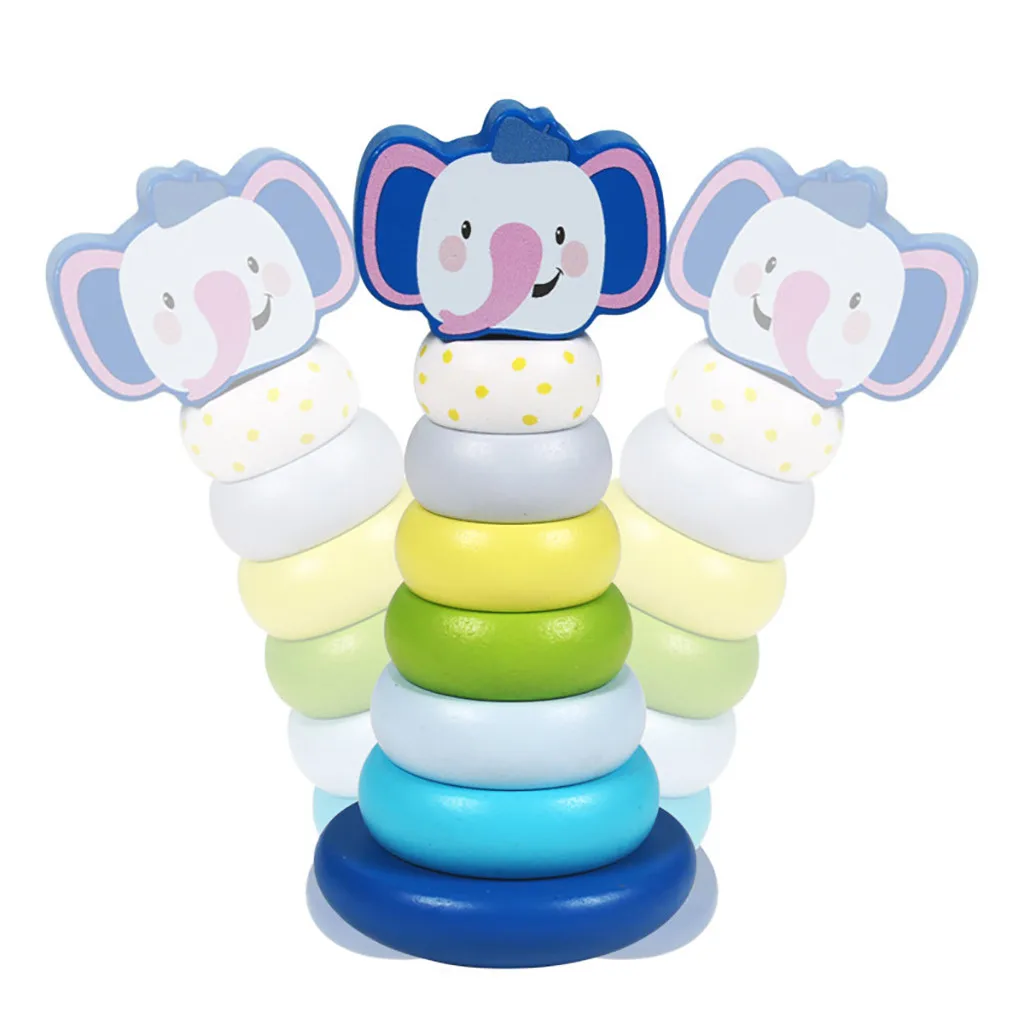Деревянный Укладка колец игрушка с слонами Топпер развивающие игрушки