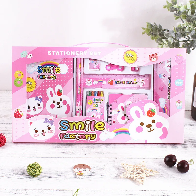 Характеристики упаковки товара; 37,5 см * 21,5*2 см Характеристики коробки для ручек; 20*6,5*2 см Отражать фактический цвет; большой выбор цветов Стиль продукта; 8 Набор канцтоваров: книжка-раскраска 1, точилка для моделирования 2, карандаш 2B два, тетрадь 1 книга, мелки 6 штук, резина 1 штука, линейка 15 см