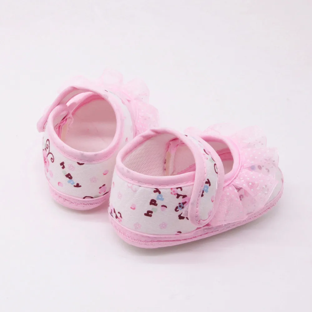 Мягкая обувь для новорожденных девочек; Кружевная обувь с цветочным принтом; Обувь для малышей