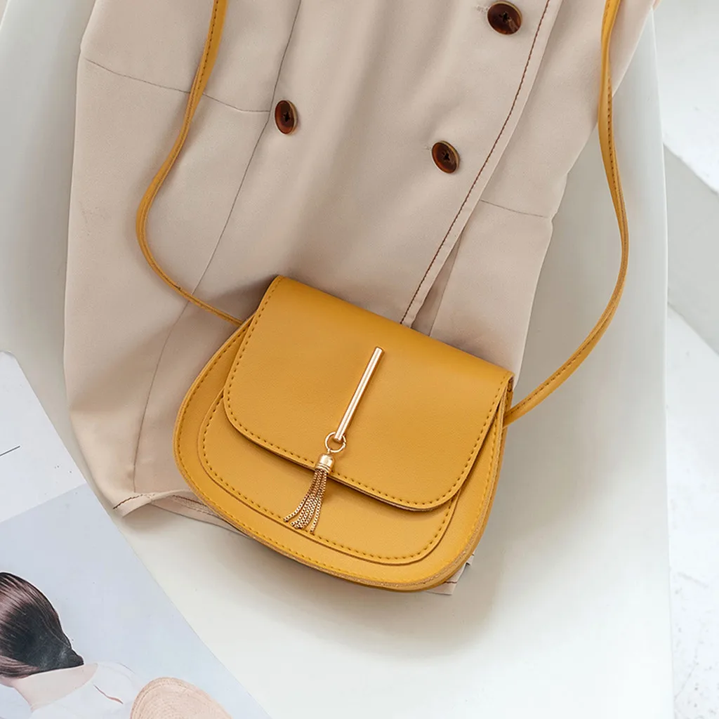 Модная однотонная кожаная сумка через плечо в простом стиле с кисточками, сумка-мессенджер