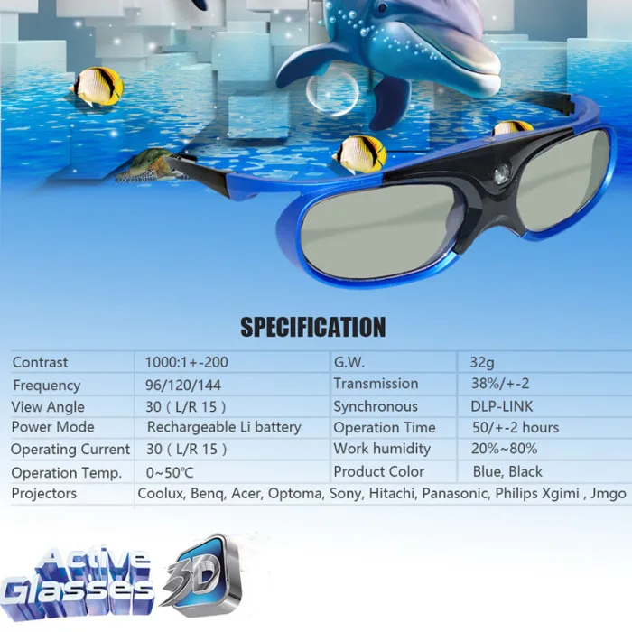 Bluetooth 3D Активные затвор очки для четкости видения очки для DLP-Link проектор ТВ OD889