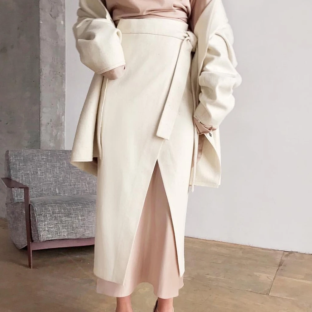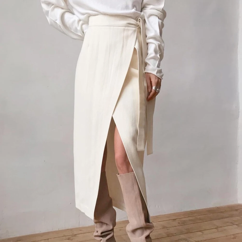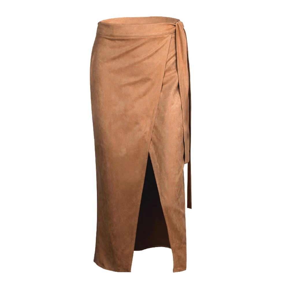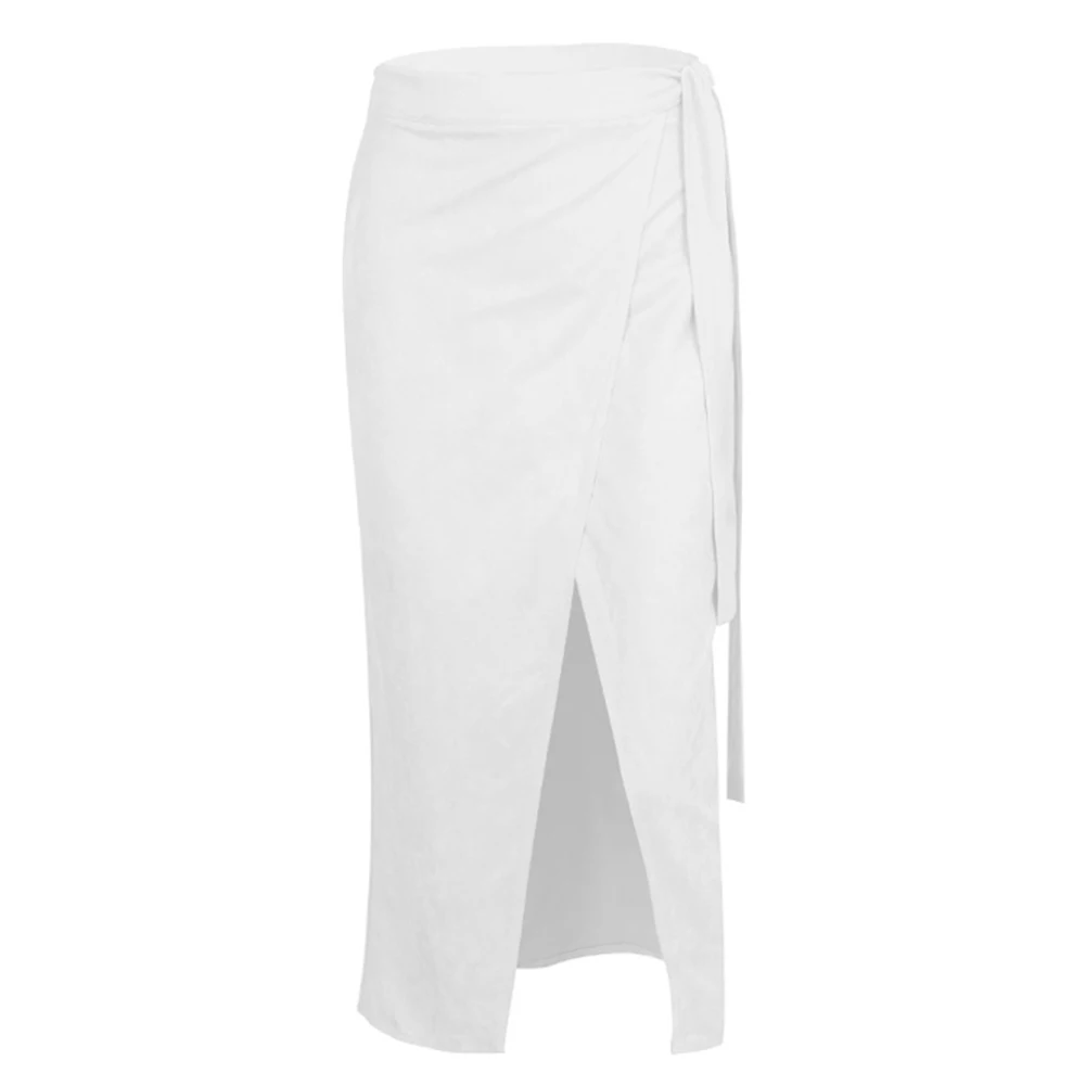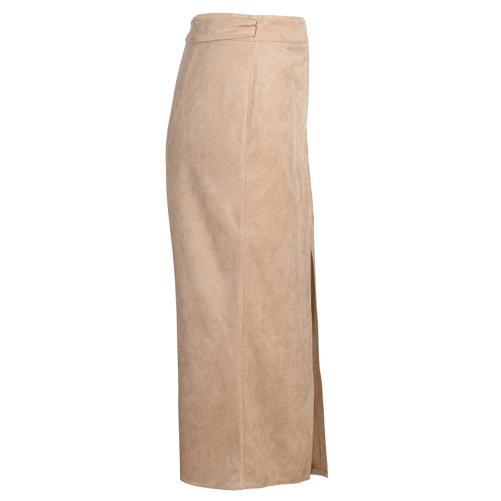 Модная женская зимняя Осенняя плотная однотонная длинная юбка с высокой талией и разрезом