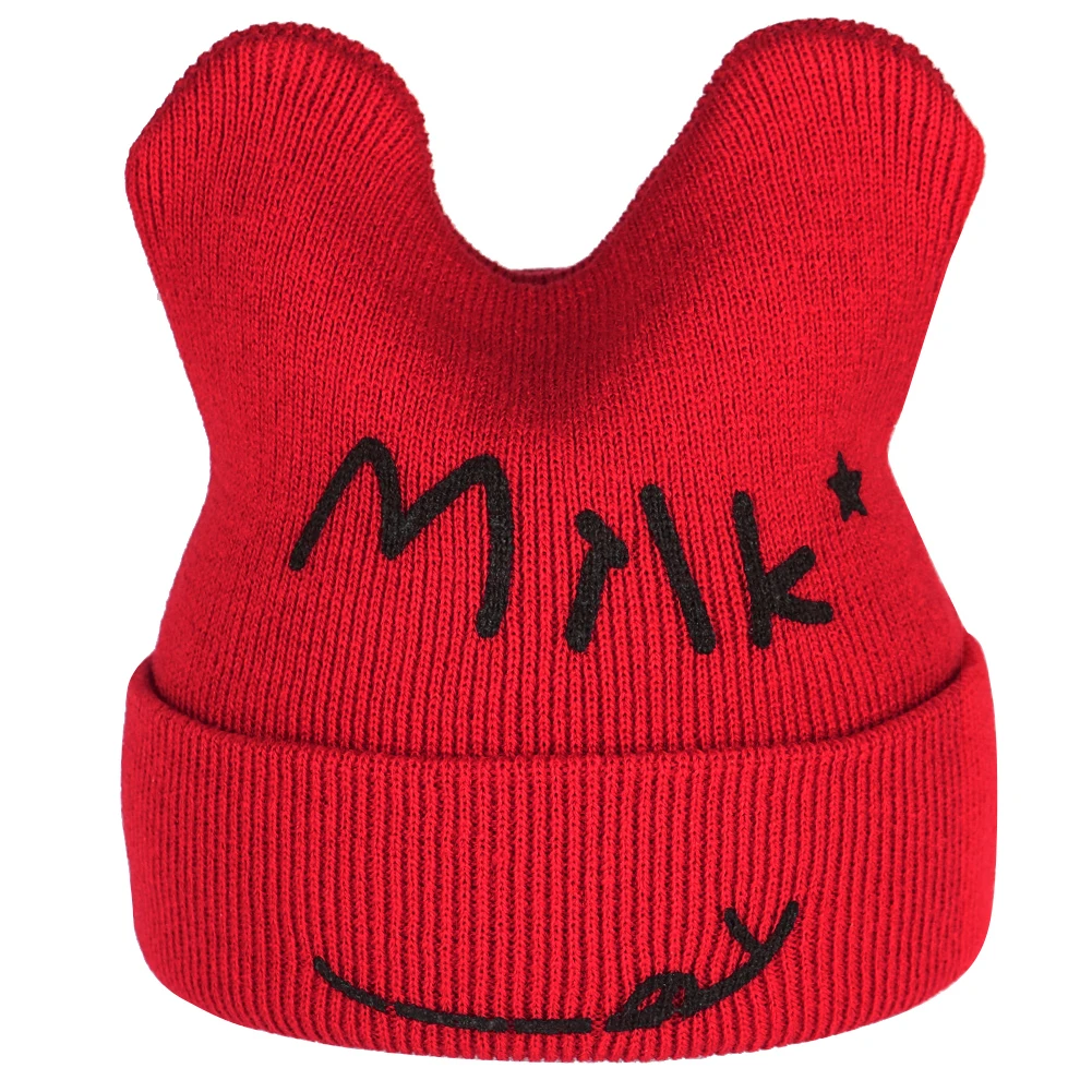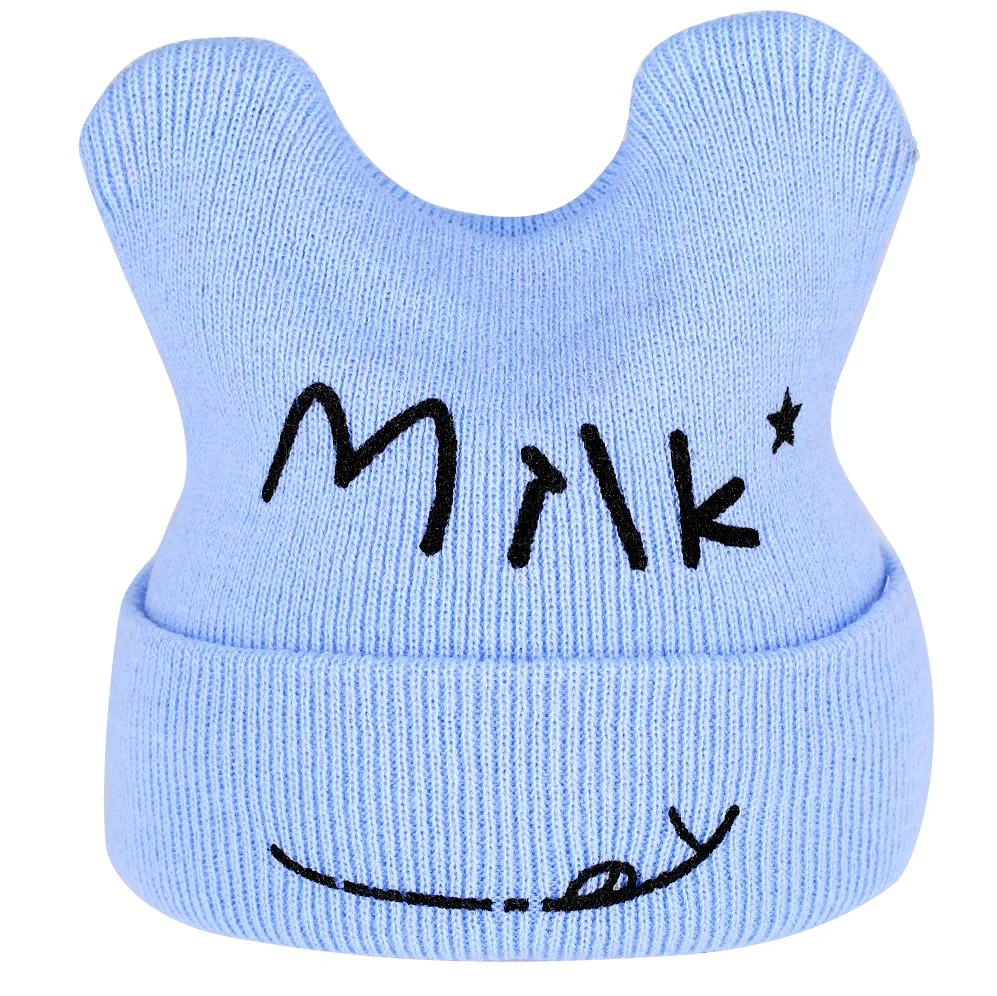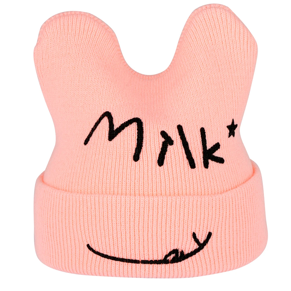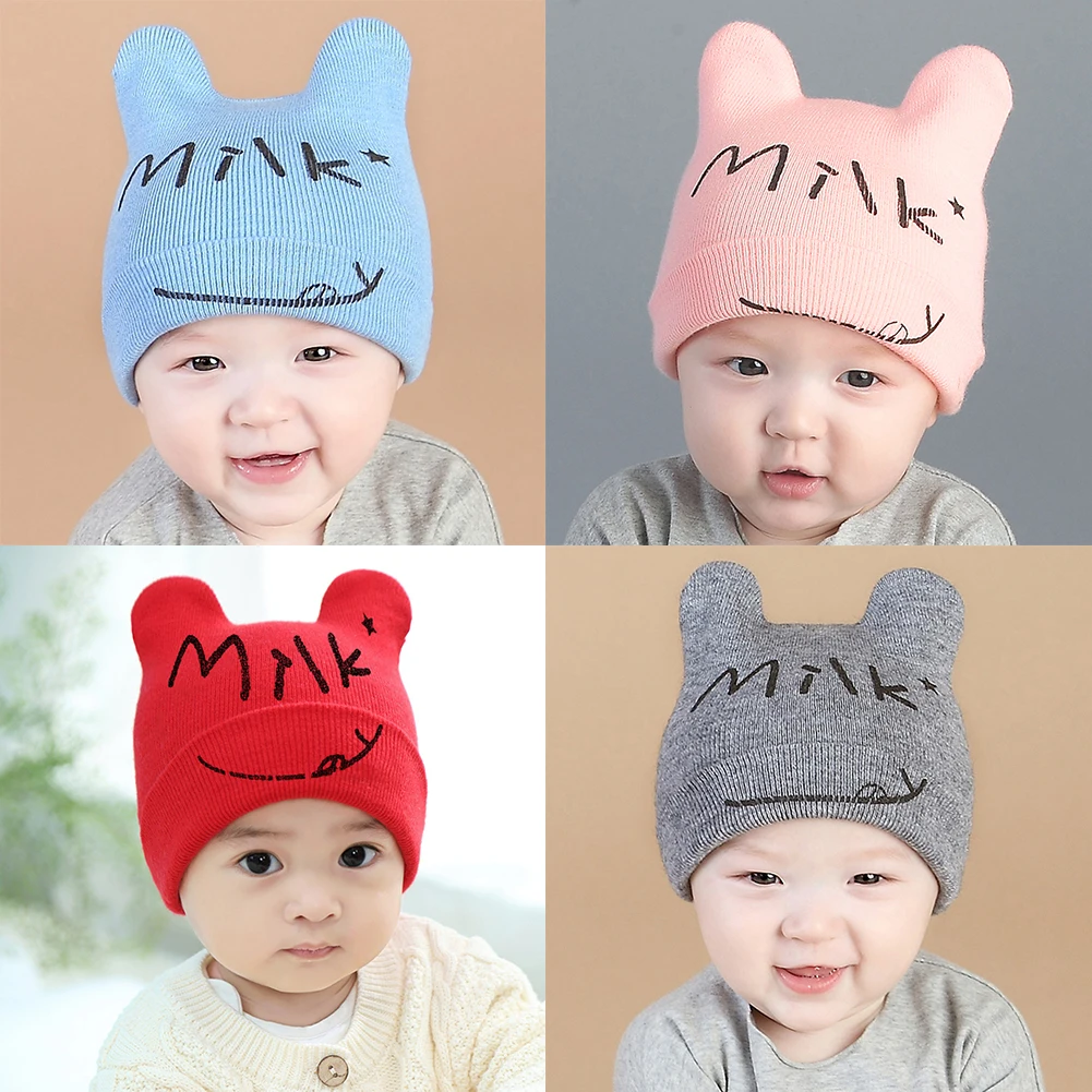 Шапочка вязаная детская шапка с принтом молочной улыбки, детский зимний теплый вязанный бини, шапочка для новорожденных, шапка, кепка, ребенок дошкольного возраста девочки младенец, ребенок