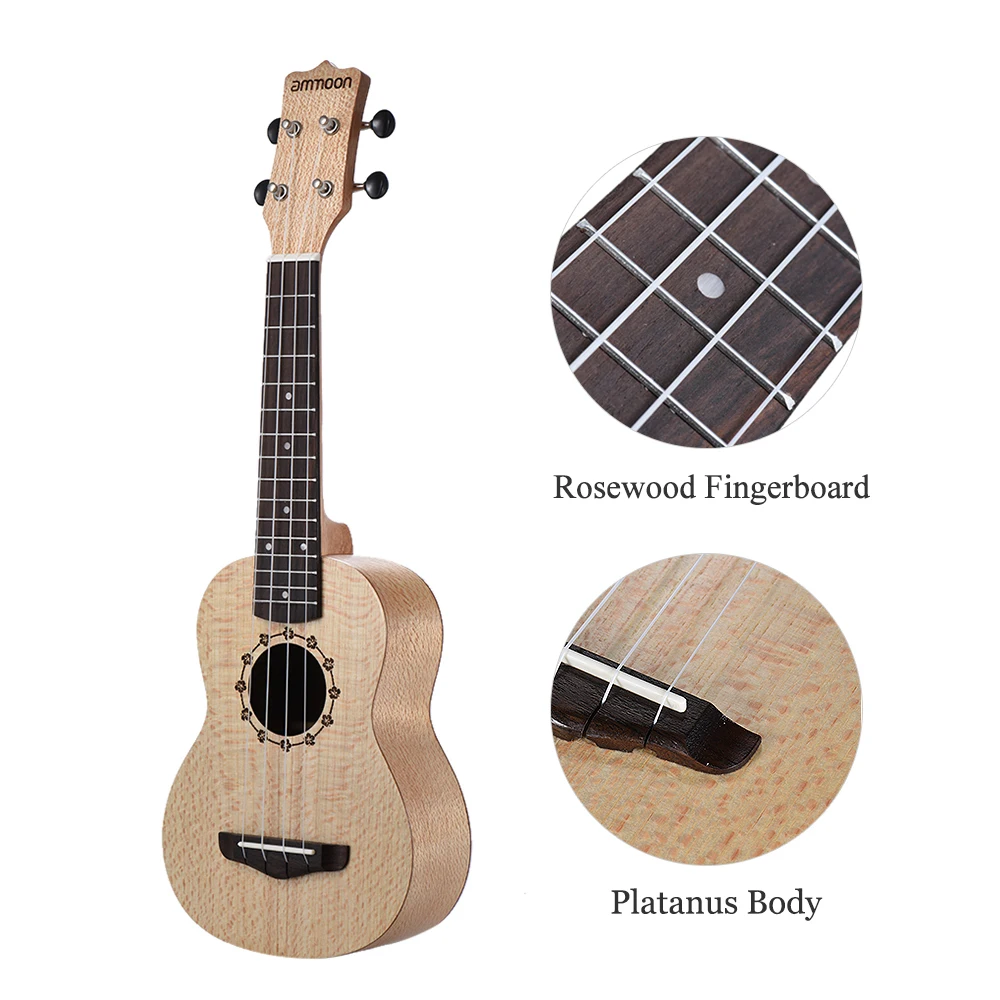 Ammoon Soprano Ukulele, 21 дюйм, изготовлен из изысканного платанового тела и розового дерева, действительно яркий и насыщенный звук. Отличный выбор для любителей музыки.