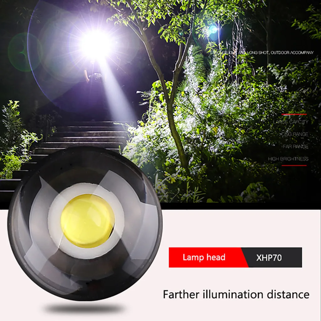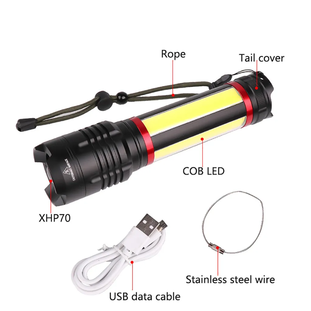 Светодиодный фонарик Фонарь XHP70 + COB USB перезаряжаемая водонепроницаемая лампа ультра яркая