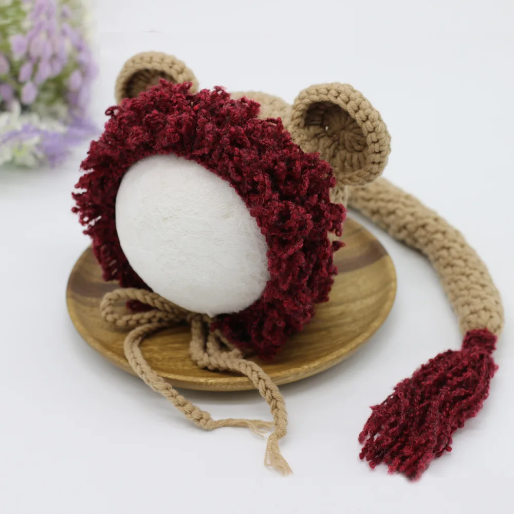 Реквизит для фотосъемки новорожденных в форме льва; Шапка с хвостом; Детская шапка для фотосъемки; Одежда для малышей; Аксессуары для фотосъемки; Вязаная детская шапка