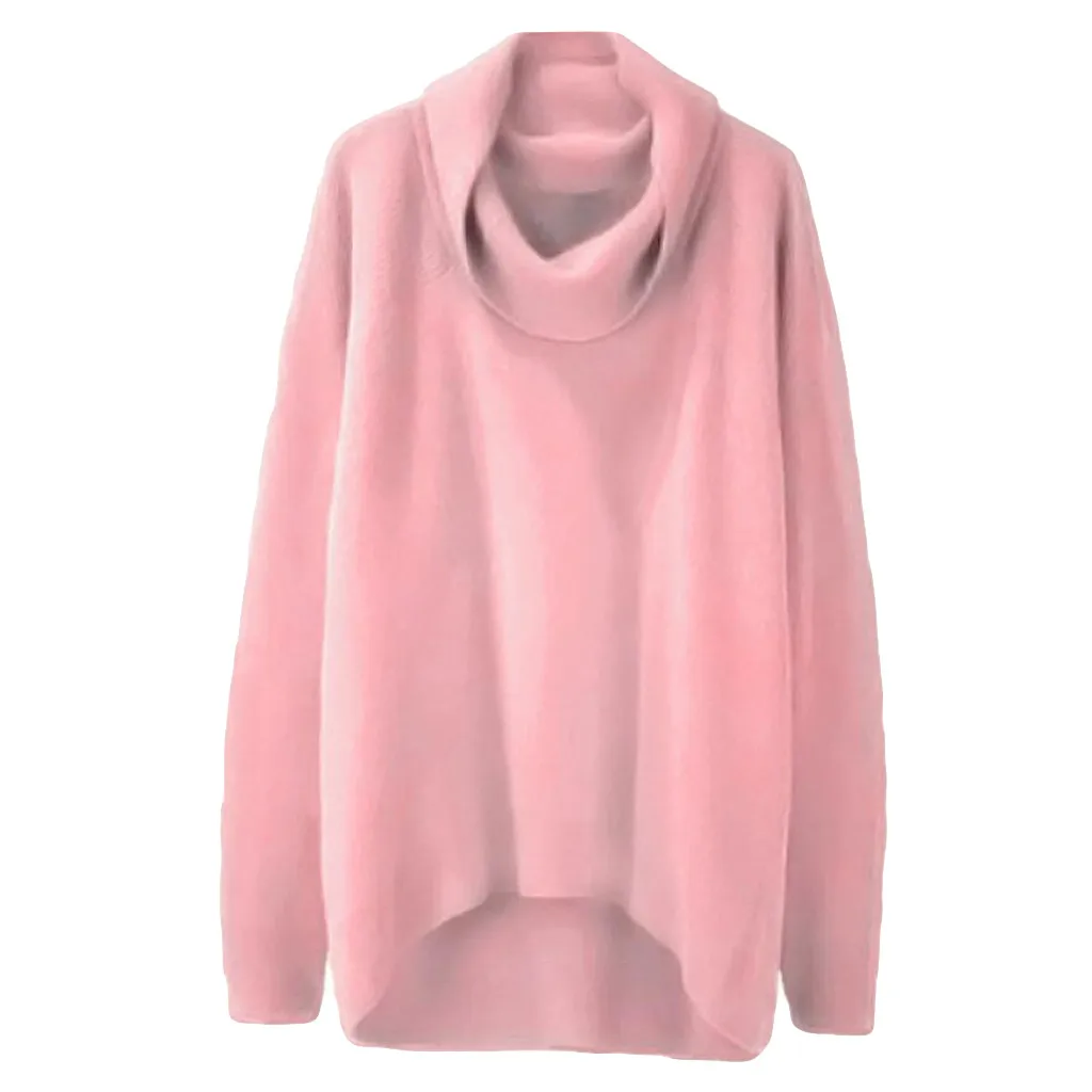 Модный женский однотонный пуловер с высоким воротником и асимметричным подолом, свободный свитер