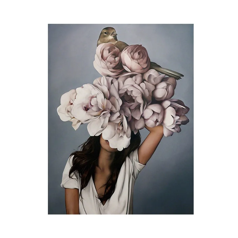 Цветы Перья женщина абстрактный холст картина стены искусства печати плакат картина декоративный Рисунок гостиной украшение дома