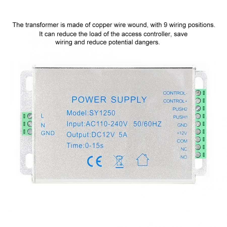 Контроллер электропитания, который обладает сильной защитой от помех, превосходной стабильностью и надежностью, становится все более популярным в домашнем использовании. Речь идет о мировом напряжение AC110-240V для DC12V 5A блок питания для системы контроля доступа. Когда происходит короткое замыкание или другая авария, он автоматически отключает питание или сжигает предохранитель.