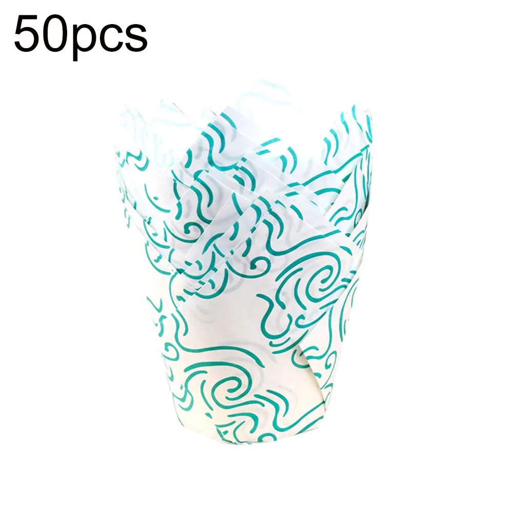 50 шт., маслостойкие бумажные стаканчики для торта, бумажные стаканчики для кексов, коробка для выпечки, поднос, чехол для чашки, торты, инструменты для украшения тортов