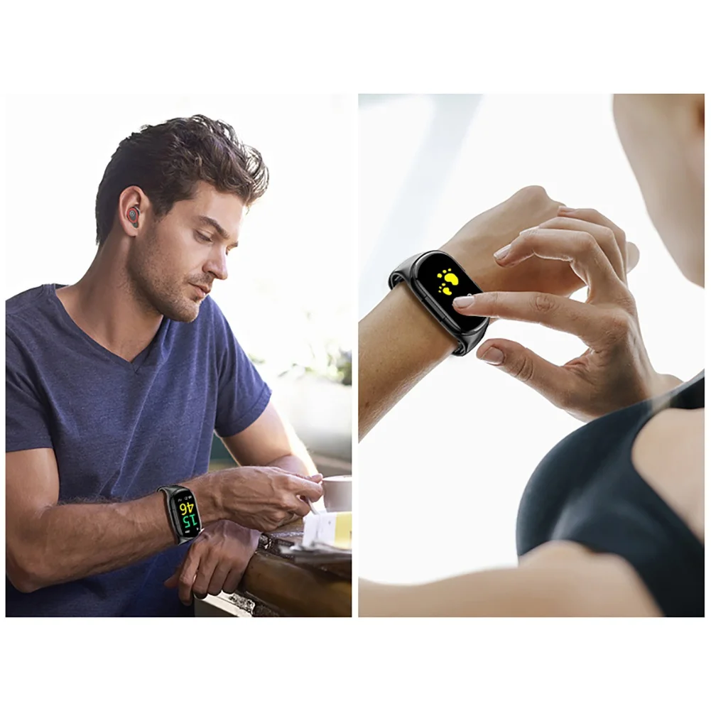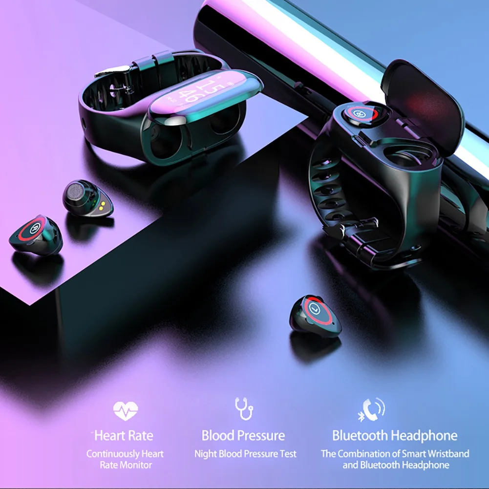 2 в 1 браслет с монитором артериального давления, спортивный браслет M1, 2019 с Bluetooth-наушниками, умные часы
