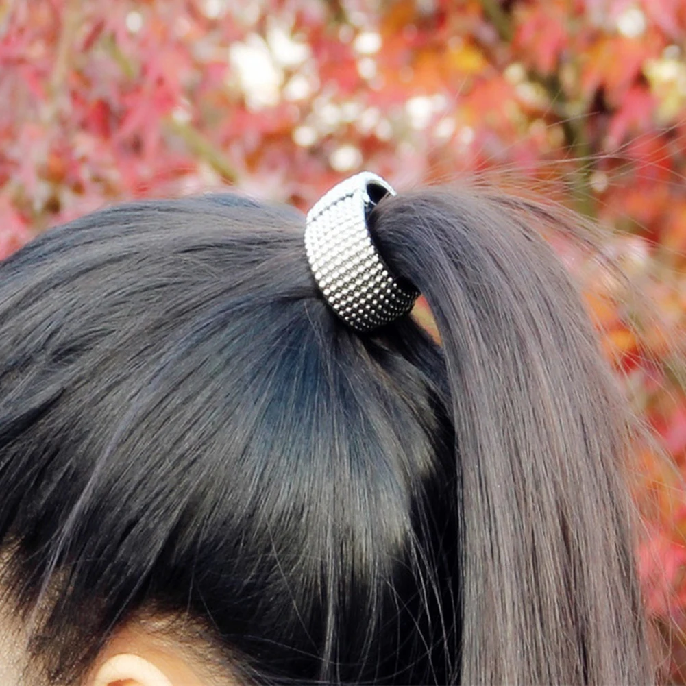 Fashion Women Punk Rivet Circle Ring Elastic Hair Rope Band Ponytail Accessory