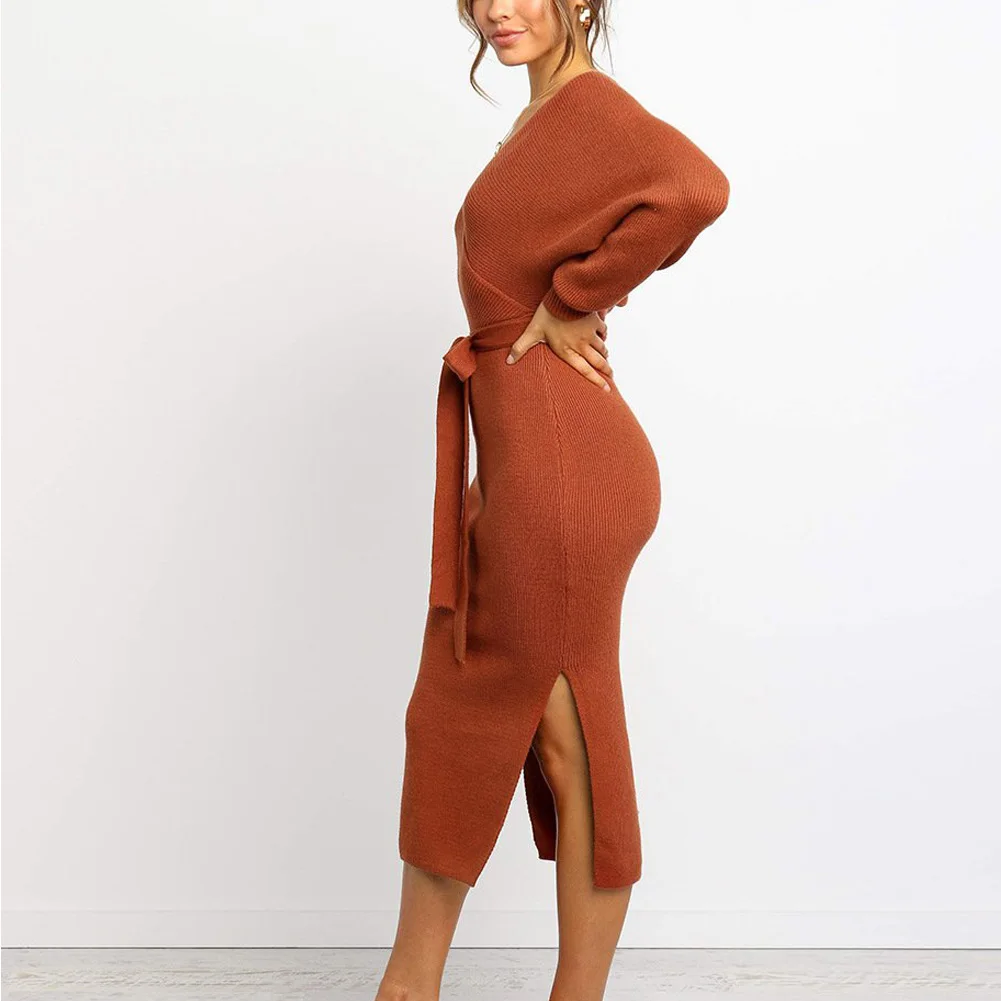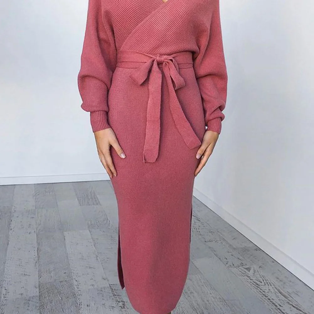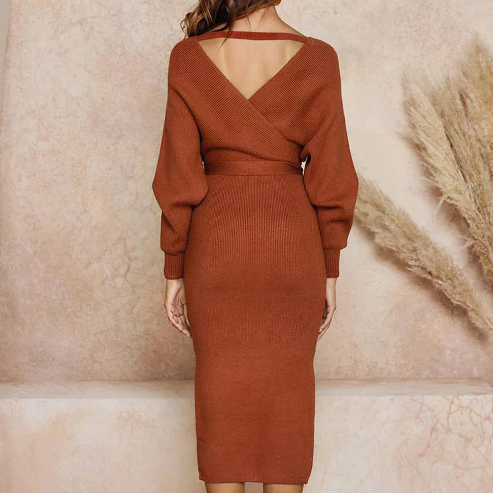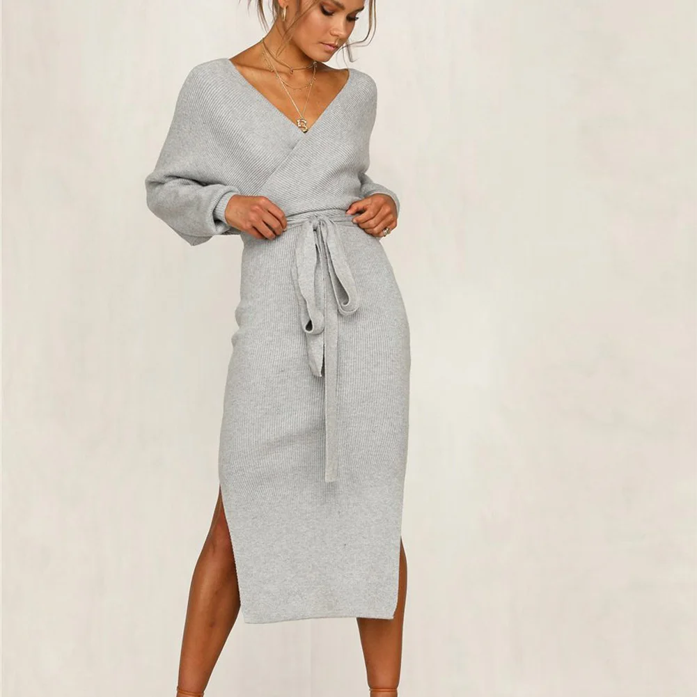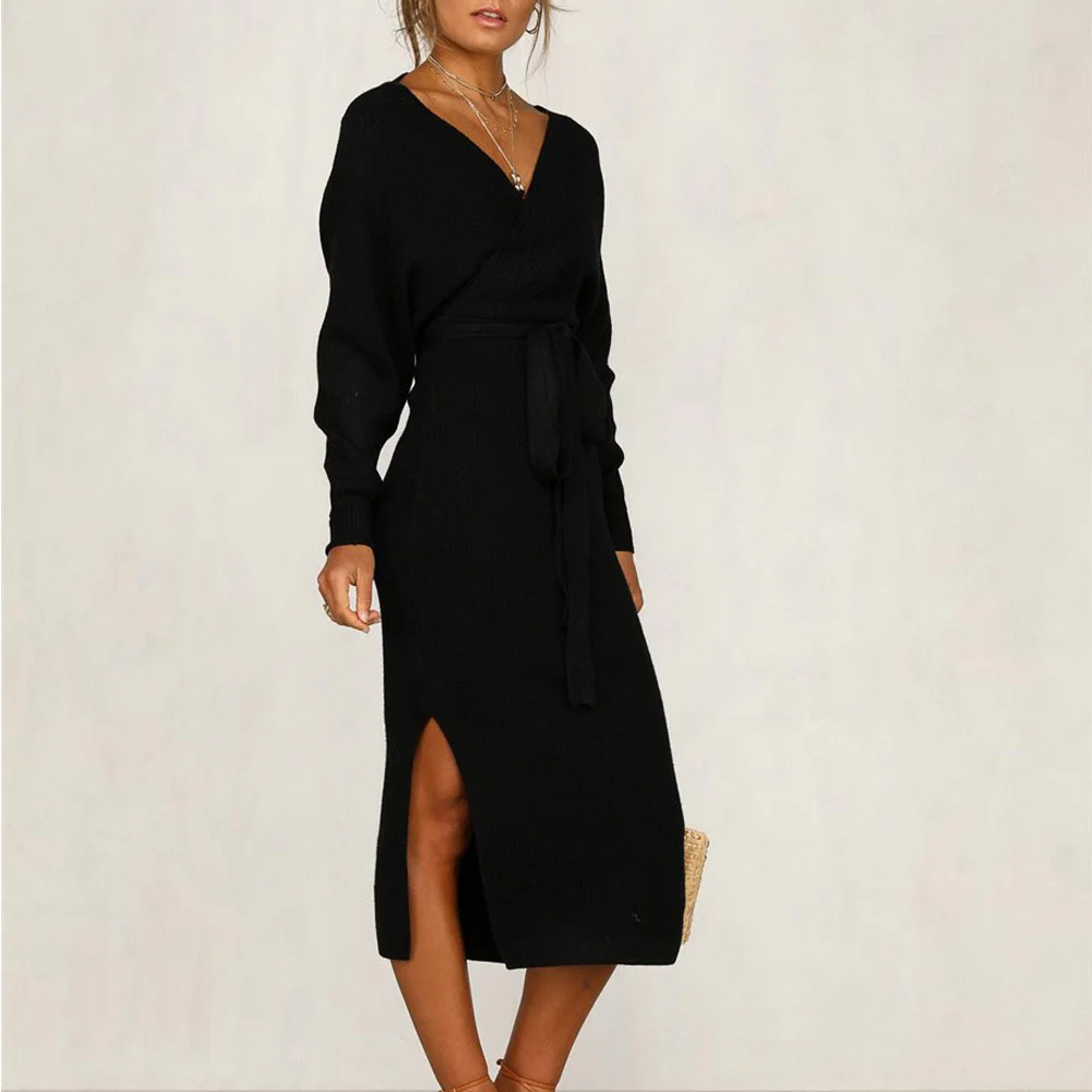 - V neck with batwing sleeve design, ladies and feminine style, nice winter dresses for women.