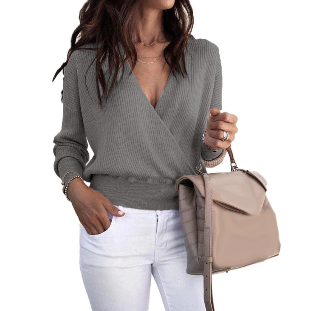 Осенний вязаный свитер с глубоким v-образным вырезом, модные женские свитера, Зимние Топы для женщин, пуловер для женщин, Hiver Truien Dames